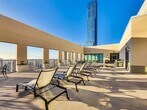 FULLY FURNISHED CONDO. Highly Sought-After High-Floor Corner One-Bedroom with Balcony! This spacious and bright residence features floor-to-ceiling windows in the large living room, offering sweeping views and abundant natural light. The open-concept white kitchen includes Whirlpool appliances and a granite breakfast bar, perfect for entertaining. Enjoy the convenience of in-unit laundry and a generous walk-in closet in the bedroom. Heat, A/C, and basic cable included! Full-amenity building with 24-hour door staff, penthouse sundeck, fitness center, on-site dry cleaners, and bike storage.