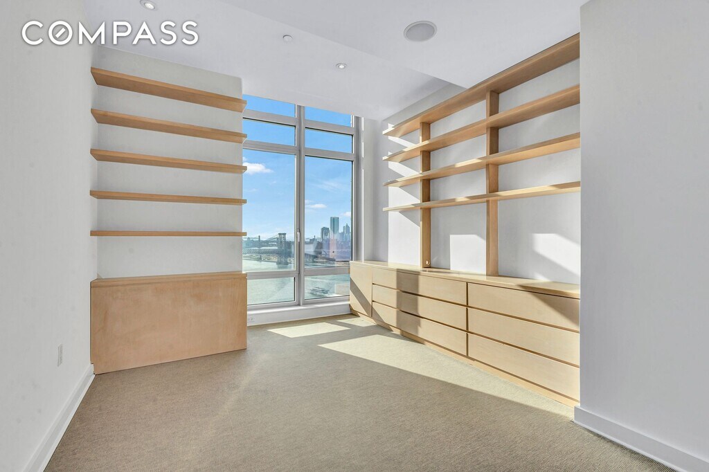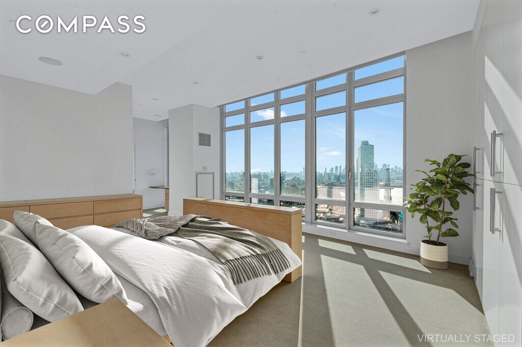 Experience the pinnacle of luxury living with this stunning penthouse rental at 2 Northside Piers. This one-of-a-kind penthouse spans the 30th and 31st floors and offers nearly 2,000 square feet of impeccably designed interior space, and a large private terrace. Every room in this apartment has breathtaking water views complemented by the iconic Manhattan skyline. Inside, you are greeted by a show-stopping custom glass and steel staircase imported from Italy - a striking centerpiece that perfectly frames the panoramic views. The main level features a sun-drenched living area with floor-to-ceiling windows, custom shades, and built-ins throughout that seamlessly add storage. The chef’s kitchen is a dream, outfitted with Bosch and SubZero appliances, a wine fridge, and a pantry. Just off the living area is a versatile room that can be utilized as a guest bedroom, office, or den, complete with bespoke built-ins, a large walk-in closet, and powder room. Upstairs, you’ll find the primary suite and second bedroom. The primary bedroom is outfitted with custom built-ins, a walk-in closet, and spa-like ensuite bathroom complete with a double sink and walk-in shower. The second bedroom features a large closet, and an en-suite bathroom. Additional conveniences include a full-size vented washer and dryer. Residents of 2 Northside Piers enjoy access to world-class amenities, including a heated indoor pool, hot tub, sauna, state-of-the-art fitness center with Peloton bikes, massage and yoga rooms, a children’s playroom, screening room, lounge, and refrigerated grocery storage. In addition, you’ll enjoy the waterfront esplanade, easy access to the ferry, waterfront, parks, and vibrant neighborhood restaurants, galleries, and boutiques. Tenant Fees: First month’s rent: 1 month’s rent Security deposit: 1 month’s rent Lease Processing Fee: $350 Board Package Initiation Fee: $120 Move-In Fee: $500 Credit Check Fee: $150 Refundable Move-in Deposit: $1,000 Digital Submission Fee: $65 Application Administration Fee: 5% of building application fees (excluding Digital Submission & Initiation Fees) DepositLink: $18 per transaction (escrow account for 1st month’s rent and security deposit)