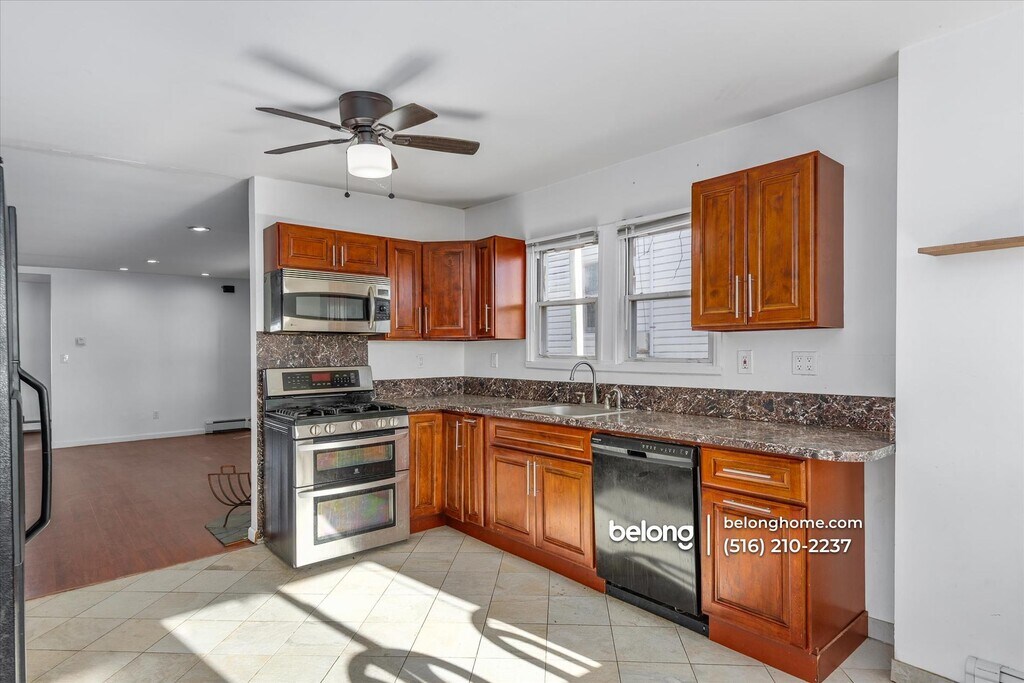 Comfort takes the lead in this inviting abode, where features like rich flooring throughout the main level and a stone-faced decorative fireplace create a welcoming space for daily living. Your living and dining spaces flow with ease, supported by ceiling fans that help keep the environment pleasant throughout the day. The kitchen provides practical functionality with its gas range, dishwasher, generous cabinet storage, and spacious counters for meal prep. Tile flooring adds durability underfoot, and the dining nook sits right by the window for a naturally bright place to enjoy meals. All three bedrooms offer flexibility for sleeping, working, or additional storage, while the full bath keeps routines simple with its straightforward layout. Pets are welcome, giving you the freedom to bring along your furbabies without hassle. This location keeps everyday needs close by. You’ll be minutes from Stop & Shop on Hicksville Road, as well as local conveniences like Dunkin’, Bagel Café, and neighborhood pizzerias. Outdoor options are easy to reach too, including the expansive John J. Burns Park with its fields, playgrounds, and waterfront paths. The Massapequa Preserve offers additional trails and nature views just a short drive away, and nearby Sunrise Highway provides straightforward access across the South Shore. *Fireplace is for decorative use only and cannot be used without consent from Belong. *Our homes come as-is with all essentials in working order. Want upgrades? Request it through the Belong app, and our trusted pros will take care of the rest!