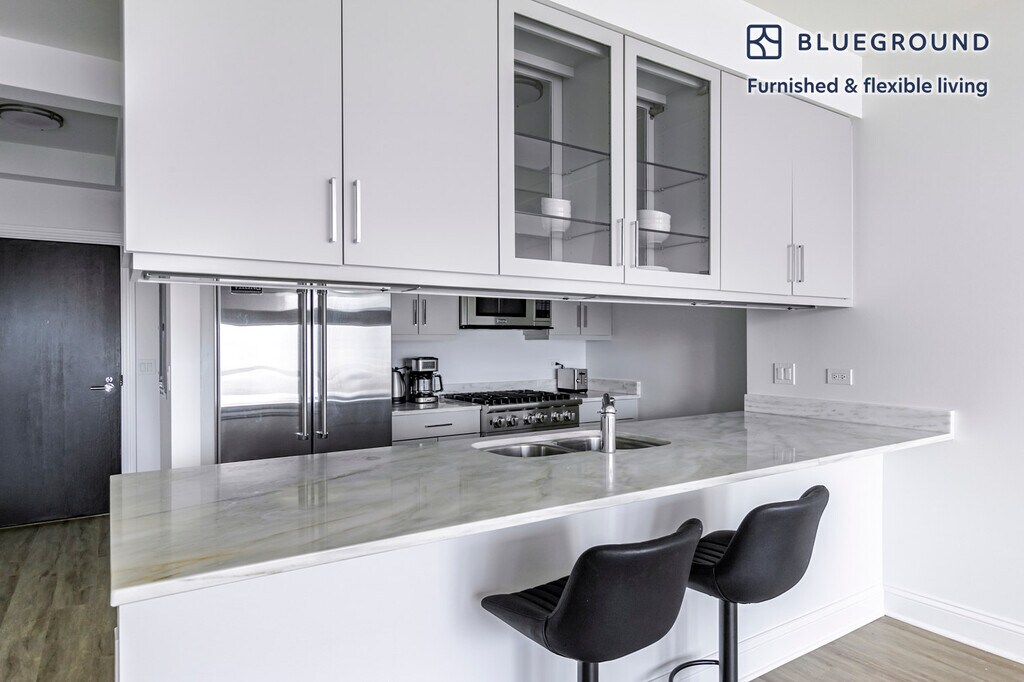 Show up and start living from day one in Chicago with this cozy one bedroom Blueground apartment. You’ll love coming home to this thoughtfully furnished, beautifully designed, and fully equipped Gold Coast home. (ID #CHI1285) The advertised rate of $3,790/month is the lowest available price, based on a 1 month(s) and 22 day(s) stay with a move-in date of February 25, 2026. If you’re looking for a 1-year stay, the rate is $4,724/month. Rates vary depending on the duration of stay, season, and other parameters. For exact pricing and additional pricing components, please visit our website and enter your desired move-in and move-out dates. The rate is applicable when billed upfront; it can be higher if billed in multiple payments. Brokers are welcome to reach out. Were you looking for an unfurnished lease? Try Blueground instead and upgrade from unfurnished to furnished living: - Furnished at rates comparable to unfurnished - No setup or furniture costs - save thousands - Move-in ready - save time, just bring your suitcase Designed with you in mind Gorgeous furniture, fully equipped kitchen, smart TV, and a premium wireless speaker are just a few of the amenities you’ll find inside this one bedroom apartment. Ideally located in Chicago, you’ll find a lot to love outside as well. When you’re ready to relax, you’ll be happy to discover every Blueground bedroom comes with superior quality mattresses, fully stocked linens, and cozy towels. We handle everything so you can simply show up and start living. This apartment also offers in-apartment laundry. Sleeping arrangements Queen Bed, 63in/160cm Amenities Building amenities unique to this one bedroom apartment include an on-site: - Dryer - Elevator - Washing machine - Parking - Pets allowed Arrival and ongoing support The entire apartment is yours to enjoy! Throughout your stay, you’ll have access to our Client Experience team through the Blueground App. You can schedule additional cleanings, submit maintenance requests, and view our neighborhood recommendations with just a few taps. We’ll share all details upon confirmation of your stay. Ideally Located This furnished rental is in the historic Gold Coast district. The area is located just north of downtown Chicago, nestled against the Lake Michigan shoreline. Considered one of the most affluent neighborhoods in the country, the Gold Coast is every upscale shopper’s dream. The retail revelry on Oak and Rush Streets includes swanky boutiques and rare, designer fashions. There are many celebrated restaurants to try, including Michelin-starred winners and classic Chicago steakhouses. Amongst the prestigious hotels and celebrated eateries, there is a trove of booming nightlife hot spots and high-energy events. Other things to note This Blueground apartment has flexible lease options, allowing you to book it for one month, a year, or more. Pets are welcome, though weight limits and breed restrictions apply and may incur fees. Parking is offered based on availability and is subject to a fee. We take great pride in ensuring every photo displayed is shot in our own units with our actual furnishings. That said, we regularly refresh our decor and furniture arrangement, which may differ from what’s pictured. Also note - This apartment's central location means it can be noisy at times - This apartment is located on a busy street - The apartment is in a busy location, so it will be noisy when your windows are open [SI]
