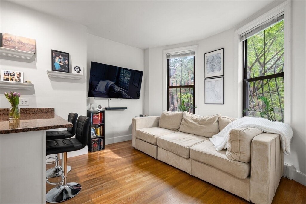 Nestled on one of the South End’s most desirable cobblestone streets, this elegant parlor level, two-bedroom, one-bath home beautifully combines classic Boston charm with modern comfort. Oversized windows fill the space with abundant natural light, accentuating the hardwood floors and open-concept living area. Both bedrooms are generously sized, offering flexibility for a guest room or an at home office. The well-appointed kitchen features granite countertops, a dishwasher, and a convenient breakfast bar, ideal for casual dining or entertaining. Additional highlights include laundry and extra storage in the basement. Perfectly situated near the South End’s renowned restaurants, cafés, and boutiques, this residence offers a rare opportunity to experience quintessential Boston living in one of the city’s most desirable neighborhoods.