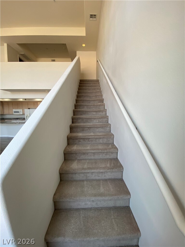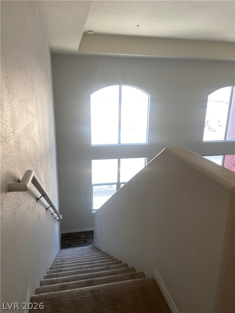 Beautiful, 2 story penthouse loft at the Manhattan condos on the south strip. The condo has been freshly painted and features a huge great room downstairs, a spacious upstairs loft with private bathroom and large walk-in closet. Tile and wood-look laminate floor downstairs. Carpet upstairs. Manhattan is an upscale, 24/7 guard gated community on the south strip with assigned underground parking, multiple pools & fitness center. Amenities include multiple pools and spas, clubhouse, business center, conference room, cardio & yoga studio, sauna, BBQ area, basketball court, and playground. Small pet ok!