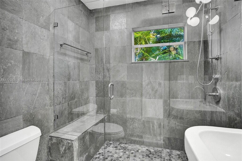 Miami Shores 3BR, 2BA single family home in a quiet residential neighborhood. This property features a split floor plan, with a large master suite en-suite bathroom and floor-to-ceiling closets. The open-concept kitchen equipped with granite countertops, gas stove, convection oven, dishwasher, microwave, refrigerator, and ample cabinet space. The dining room has large windows for natural light, while the living room opens to a backyard terrace through French doors. Large fenced backyard Home features a vaulted entryway with a working fireplace, with marble and hardwood floors. Large storage shed with electricity. Located near downtown Miami Shores and golf course, just 10 minutes from Midtown Miami, 20 minutes downtown Miami, 20 minutes Miami Beach. MLS # A11990005