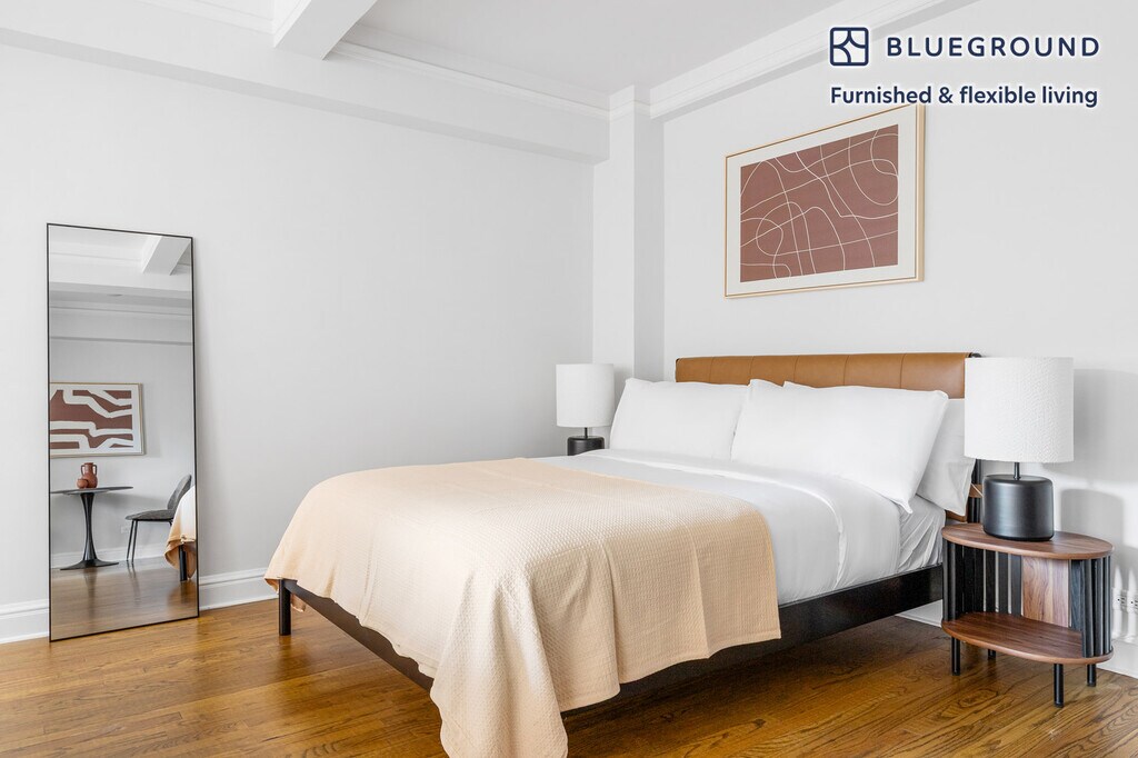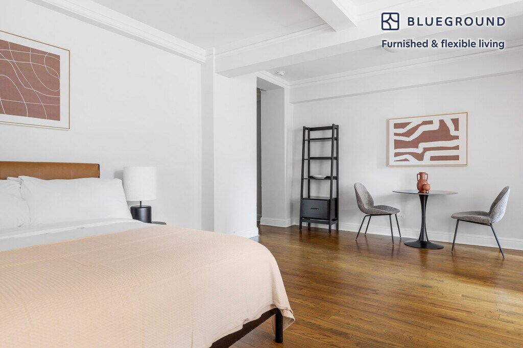 Discover the best of New York, with this studio apartment in Murray Hill. It’ll be easy to simply show up and start living in this furnished apartment with its fully equipped kitchen, living room, and our dedicated, on-the-ground support. (ID #NYC2108) The advertised rate of $4,710/month is the lowest available price, based on a 12 month(s) stay with a move-in date of May 18, 2026. Rates vary depending on the duration of stay, season, and other parameters. For exact pricing and additional pricing components, please visit our website and enter your desired move-in and move-out dates. The rate is applicable when billed upfront; it can be higher if billed in multiple payments. Brokers are welcome to reach out. Were you looking for an unfurnished lease? Try Blueground instead and upgrade from unfurnished to furnished living: - Furnished at rates comparable to unfurnished - No setup or furniture costs - save thousands - Move-in ready - save time, just bring your suitcase Designed with you in mind Gorgeous furniture, fully equipped kitchen, smart TV, and a premium wireless speaker are just a few of the amenities you’ll find inside this studio apartment. Ideally located in New York, you’ll find a lot to love outside as well. When you’re ready to relax, you’ll be happy to discover every Blueground bedroom comes with superior quality mattresses, luxury linens, and cozy towels. We handle everything so you can simply show up and start living. Sleeping arrangements Queen Bed, 63in/160cm Amenities Building amenities unique to this studio apartment include an on-site: - Doorman - Dryer in building - Elevator - Washing machine in building - Lounge - Pets allowed Arrival and ongoing support The entire apartment is yours to enjoy! Throughout your stay, you’ll have access to our Client Experience team through the Blueground App. You can schedule additional cleanings, submit maintenance requests, and view our neighborhood recommendations with just a few taps. We’ll share all details upon confirmation of your stay. Ideally Located This furnished apartment is located in Murray Hill, a lively Midtown neighborhood. The active nightlife scene makes it increasingly ideal for youngsters and recent graduates. Simultaneously, families are relocating here as there are many good schools in close proximity. Murray Hill offers various destinations for culture-lovers. Namely, the New York Public Library and Bryant Park draw residents in from the rest of the city. Grand Central Station is only 5 minutes from Murray Hill by subway. Other things to note Building amenities may have an extra cost. This Blueground apartment has flexible lease options, allowing you to book it for one month, a year, or more. Pets are welcome, though weight limits and breed restrictions apply and may incur fees. Brokes CYOF. We take great pride in ensuring every photo displayed is shot in our own units with our actual furnishings. That said, we regularly refresh our decor and furniture arrangement, which may differ from what’s pictured. [SI]