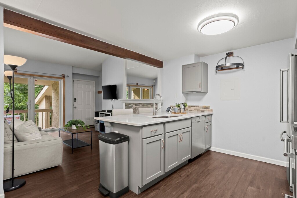 This unit has been completely remodeled and is the nicest condo in the complex.Open concept and floor planHardwood floorsSlab granite counters in kitchen and both bathroomsStainless steel appliancesNew cabinetsTrack lightingMaster bathroom has double vanity sinksSwimming pool Washer/dryer IN unit2 parking spaces in front of unitLarge closets in each bedroomWood-burning fireplaceOutside patio areaSeparate storage areaQuiet location away from busy streetsExcellent Boulder location for CU, Naropa, or commuting to Louisville, Broomfield or Denver. Close to bike paths and several bus routes. Bus stop is 300 ft. from front door. Best location in Boulder!!!Quiet and clean garden level unit with 2 bedrooms and 2 full bathrooms.Responsible, attentive, local landlord. Don't get stuck in a run down unit no one cares about.No Pets. No Smoking.