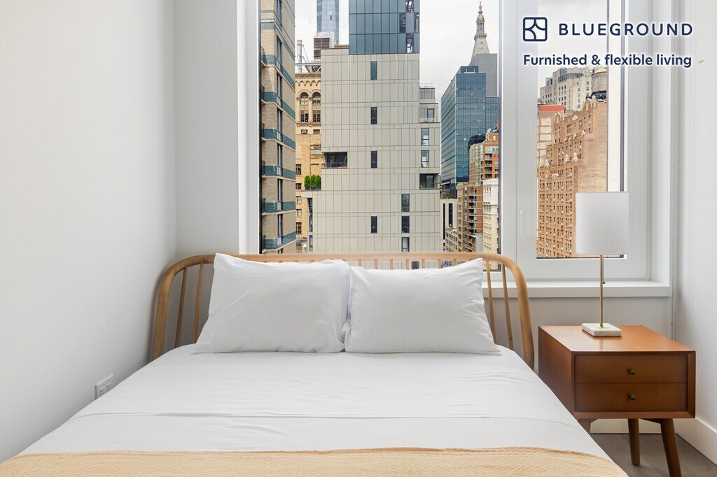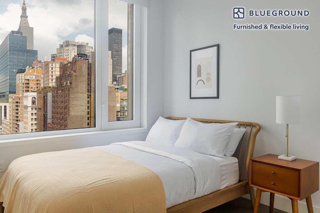 Show up and start living from day one in New York with this cheery two bedroom Blueground apartment. You’ll love coming home to this thoughtfully furnished, beautifully designed, and fully equipped Gramercy Park home with stunning views over the city. (ID #NYC1233) The advertised rate of $8,850/month is the lowest available price, based on a 12 month(s) stay with a move-in date of July 1, 2026. Rates vary depending on the duration of stay, season, and other parameters. For exact pricing and additional pricing components, please visit our website and enter your desired move-in and move-out dates. The rate is applicable when billed upfront; it can be higher if billed in multiple payments. Brokers are welcome to reach out. Were you looking for an unfurnished lease? Try Blueground instead and upgrade from unfurnished to furnished living: - Furnished at rates comparable to unfurnished - No setup or furniture costs - save thousands - Move-in ready - save time, just bring your suitcase Designed with you in mind Gorgeous furniture, fully equipped kitchen, smart TV, and a premium wireless speaker are just a few of the amenities you’ll find inside this two bedroom apartment. Ideally located in New York, you’ll find a lot to love outside as well. When you’re ready to relax, you’ll be happy to discover every Blueground bedroom comes with superior quality mattresses, luxury linens, and cozy towels. We handle everything so you can simply show up and start living. This apartment also offers in-apartment laundry. Sleeping arrangements Queen Bed, 63in/160cm Queen Bed, 63in/160cm Amenities Building amenities unique to this two bedroom apartment include an on-site: - Doorman - Dryer - Elevator - Washing machine - Lounge - Pets allowed - Rooftop BBQ Arrival and ongoing support The entire apartment is yours to enjoy! Throughout your stay, you’ll have access to our Client Experience team through the Blueground App. You can schedule additional cleanings, submit maintenance requests, and view our neighborhood recommendations with just a few taps. We’ll share all details upon confirmation of your stay. Ideally Located This furnished apartment is located in Gramercy Park, in central Manhattan and takes its name from a quaint, fenced-in private park. Home to the Roosevelts back in the 1800s, as well as many politicians and artists, the area was designed to house fashionable families. Today, it attracts young families and students who seek an inviting place to call home. On weekends, the benches and beautiful trees make the surrounding area of Gramercy Park the ideal place to jog or relax. Its central location makes it easy to get downtown or easily commute uptown for work. Second and Third Avenue offer a great variety of fine dining and bars, ideal for weekday socializing. Union Square, just a few steps away, is a bustling shopping and transportation hub. Grand Central station is only an 18-minute subway ride away. Other things to note Building amenities may have an extra cost. This Blueground apartment has flexible lease options, allowing you to book it for one month, a year, or more. Pets are welcome, though weight limits and breed restrictions apply and may incur fees. Brokes CYOF. We take great pride in ensuring every photo displayed is shot in our own units with our actual furnishings. That said, we regularly refresh our decor and furniture arrangement, which may differ from what’s pictured. [SI]