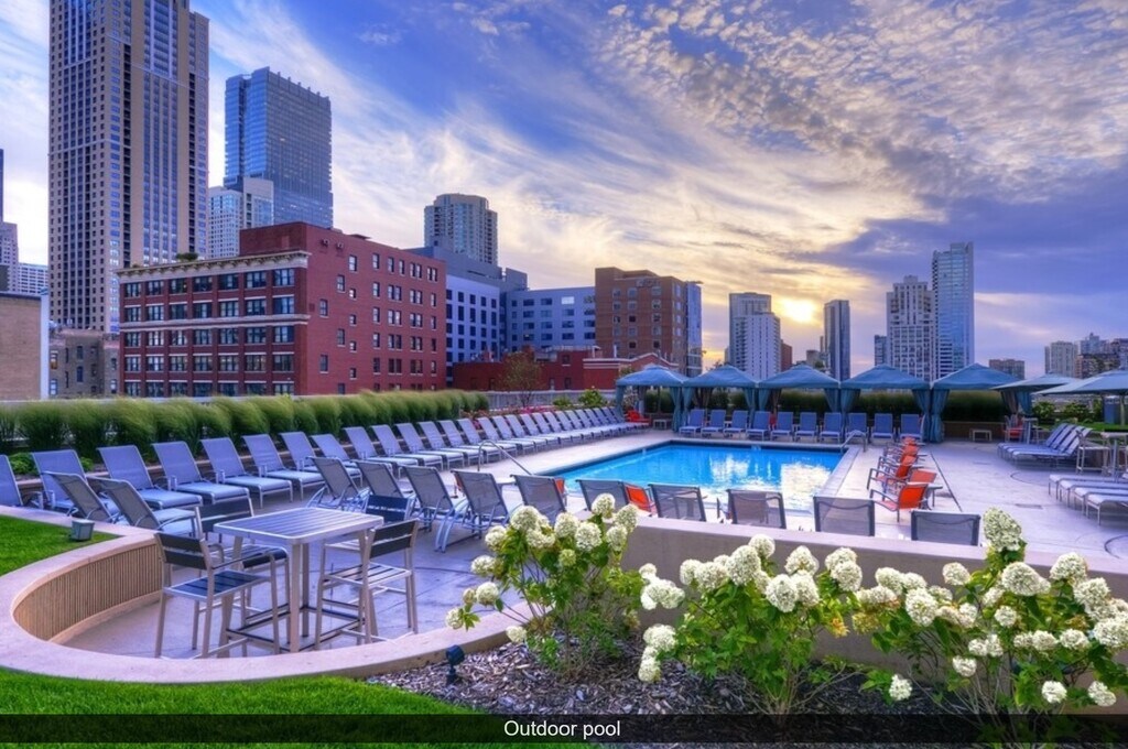 Steps away from downtown, CTA & Metra and Randolph St Restaurants nightlife. Spacious High floor 1 Bedroom with sunset views, carpeted, granite c-tops, ss appliances, in-unit W/D. Building offers outdoor pool w/ fire pit & cabanas, party room, garage parking, business center, resident lounge, guest suites, 24/7 concierge, 24 hr emergency maintenance.