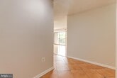 Totally renovated 1,374 Square Foot 2 bedroom, 2 bath plus Den condo with spectacular views. New efficiency windows and balcony doors have just been installed. A spacious kitchen flows into a separate dining and living room. A large balcony is located through Sliding Glass Doors off the Living Room. Small gas grills are permitted. The primary bedroom includes an updated full bath with a large walk-in closet. The second bedroom is spacious. The full bath in the hallway is updated. There is a separate laundry room complete with a full-size washer and dryer. One assigned garage parking space is located underground. The Hallmark is near Holmes Run Creek, Veteran’s Park, Beatley Library, a 24 hour CVS, Foxchase Shopping Center including Harris Teeter plus shopping and dining. An Aldi's is close by. You can find the Sunday Farmer’s Market in Cameron Station. Conveniently located Hallmark is a commuter’s dream with Metro bus and rush hour service right outside the front door. Visitors can park in the front of the building and get buzzed in. Hallmark amenities include meticulously maintained pool and grounds, tennis court, exercise room, and party room.