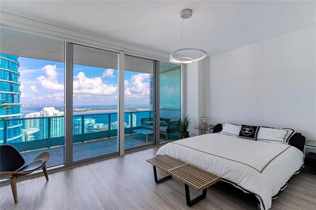 Large Penthouse with spectacular views of Biscayne Bay, Miami Beach, and the Miami skyline. The corner residence features 3 Beds, 3.5 Baths, and 10 ceilings with an open floor plan. Kitchen complete with Calacatta marble, Italian finishes, Sub Zero, and Miele appliances. Wood and marble flooring shine under the custom modern light fixtures found throughout. The primary suite hosts dual walk-in closets, an oversized soaking jacuzzi tub & gorgeous water views. Live the Epic lifestyle in the heart of Miami, steps away from all of the hot spots with resort-style amenities, including 2 restaurants, a fitness center, a lounge, a sauna + pool, and Zuma in your lobby. Epic Residence is perfectly situated on the Miami River at Biscayne Bay, full-service marina and in-room dining from Epic Hotel.