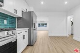 This upper unit on Vestal Avenue immediately feels like a place you can settle into. Sunlight moves through the space in the nicest way, and the light wood floors keep everything feeling warm, clean, and easy to live in. The kitchen brings its own personality with that custom green tile backsplash and a full set of stainless steel appliances, including a French door refrigerator, gas range, dishwasher, and built-in microwave. It has that fun, freshly updated look that makes cooking feel less like a chore and more like a vibe. Picture late-night pasta nights, weekend brunch at home, or grabbing a quick coffee before heading down to Sunset. The living and dining area in the kithcen have a natural flow and enough space to create your perfect setup, whether that is a cozy TV zone, a WFH nook, or room for dinner with friends. Off to the side, both bedrooms feel calm and comfortable with great light, and the updated bathroom in the middle brings that clean, modern feel with fresh tilework, a standing shower with glass doors, and black fixtures that give everything a little sleek edge. What really sells it is the setting. Vestal Avenue sits on a quiet hillside that feels tucked away but still gives you instant access to everything people love about Echo Park. Think morning walks to coffee, last minute errands at the local markets, dinner on Sunset, and the kind of neighborhood energy that makes living on the Eastside feel special. Not to mention, you get two tandem parking spots under the carport, which is a big win in this pocket of Echo Park! A fresh, inviting home in a location that just fits. Easy to imagine yourself here and even easier to want to stay!