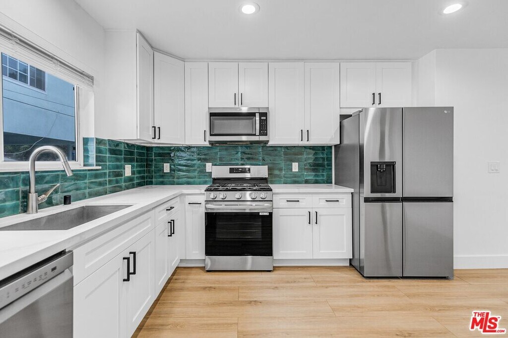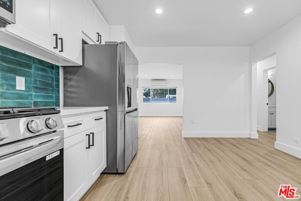 This upper unit on Vestal Avenue immediately feels like a place you can settle into. Sunlight moves through the space in the nicest way, and the light wood floors keep everything feeling warm, clean, and easy to live in. The kitchen brings its own personality with that custom green tile backsplash and a full set of stainless steel appliances, including a French door refrigerator, gas range, dishwasher, and built-in microwave. It has that fun, freshly updated look that makes cooking feel less like a chore and more like a vibe. Picture late-night pasta nights, weekend brunch at home, or grabbing a quick coffee before heading down to Sunset. The living and dining area in the kitchen have a natural flow and enough space to create your perfect setup, whether that is a cozy TV zone, a WFH nook, or room for dinner with friends. Off to the side, both bedrooms feel calm and comfortable with great light, and the updated bathroom in the middle brings that clean, modern feel with fresh tilework, a standing shower with glass doors, and black fixtures that give everything a little sleek edge. What really sells it is the setting. Vestal Avenue sits on a quiet hillside that feels tucked away but still gives you instant access to everything people love about Echo Park. Think morning walks to coffee, last minute errands at the local markets, dinner on Sunset, and the kind of neighborhood energy that makes living on the Eastside feel special. Not to mention, you get two tandem parking spots under the carport, which is a big win in this pocket of Echo Park! A fresh, inviting home in a location that just fits. Easy to imagine yourself here and even easier to want to stay! MLS# 25618359