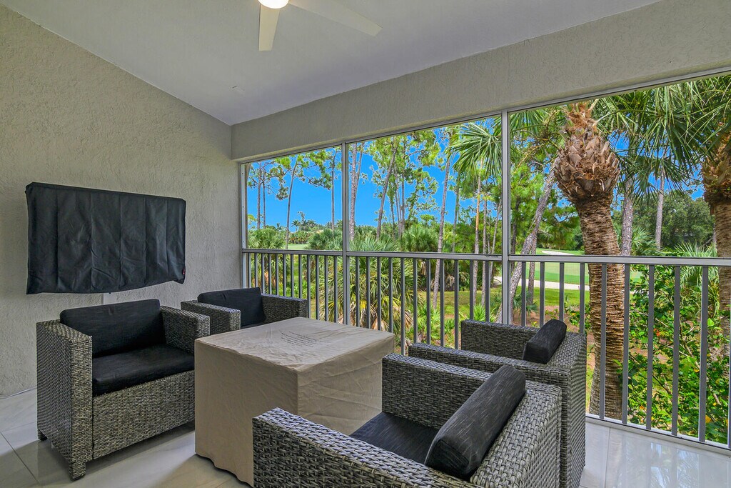 Welcome to this Gorgeous,Completely Renovated,Designer Furnished Coach Home,now available as an annual rental in Grandezza Golf & Country Club! Offered for the first time in Sabal Palm at Grandezza,this beautiful 2-bedroom,2 bathroom + den condo is true contemporary,luxury living throughout - offering a one-of-a-kind opportunity to live in what looks and feels like a designer model home. This second-floor condo INCLUDES internet,basic cable,water,trash and a detached one car garage with AC. INCLUDES community membership to the newly renovated clubhouse,pools,restaurants,tennis courts,shuffleboard,and state of the art gym. Close to SWFL Airport,Shopping,Restaurants,and beaches - Nothing will compare to the style and location of this property! Don't miss your chance to experience the pinnacle of SWFL Living!