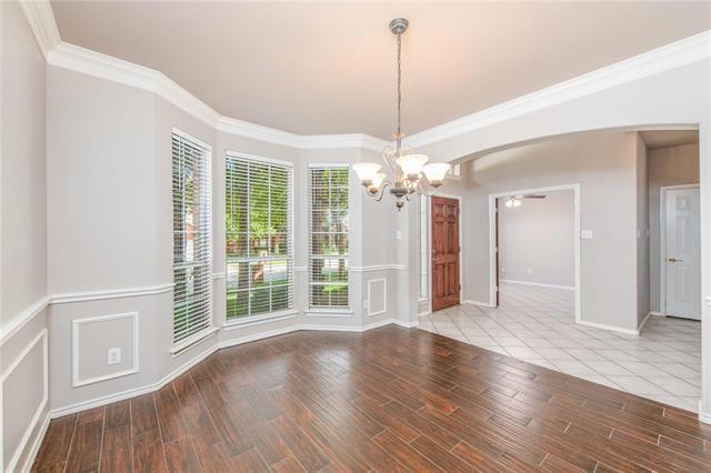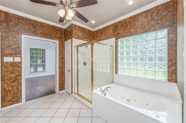 Welcome to your new home in South Arlington! This 4 bedroom, 3 and half bath home sits on a corner lot in a community backed to a beautiful Nature Preserve. This home hosts vaulted ceilings in all four-bedrooms with lots of custom features, mature trees provide ample shade, and the rear entry garage adds extra privacy. The interior boasts lots of crown molding, high ceilings, bay windows, a great kitchen, walk-in closets, and an upstairs game room or second living room. Recent exterior additions enhance the backyard to allow for full enjoyment, the pavilion with fans and 110, a mist system, concrete work and hardscape make the backyard ideal. New paint throughout most of the house. The neighborhood has a community swimming pool and peacocks.