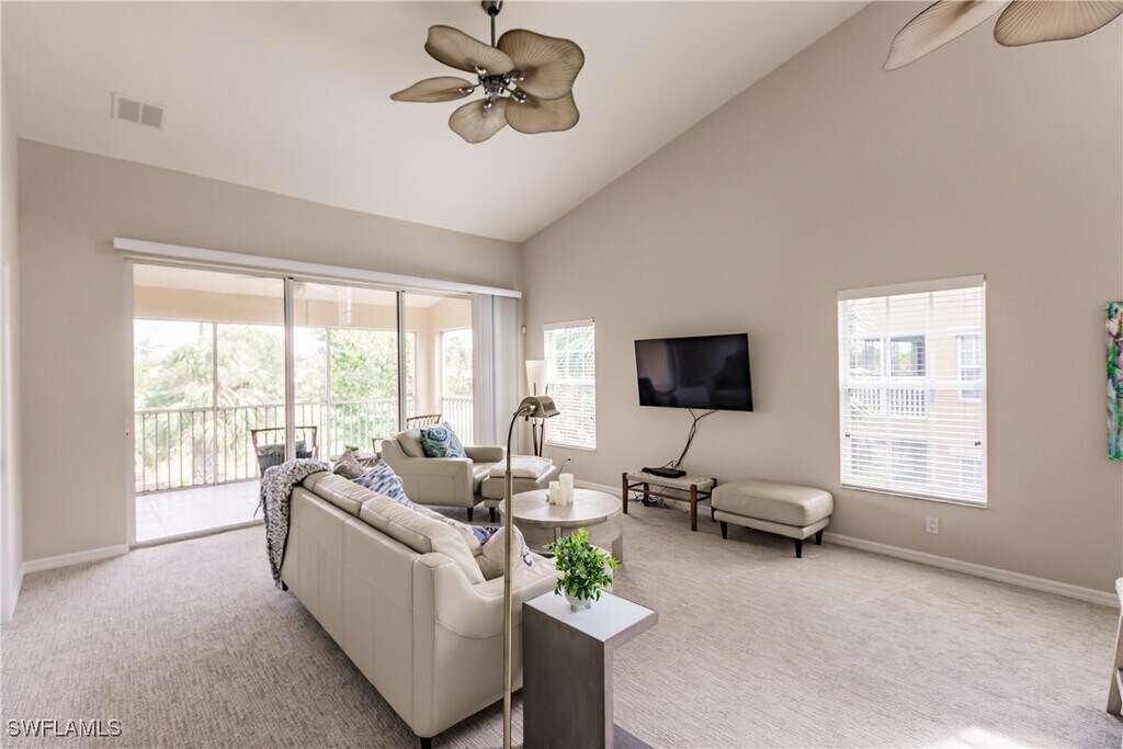 BEAUTIFUL TURNKEY FURNISHED 2+den/2 baths in highly sought-after Grandezza community. One of a kind! Who wants boring beige when this unique color scheme, hand painted art, and decor was expertly chosen by a top interior designer out of Vancouver With over 1500 square feet this home has a lot to offer. Enjoy many upgrades including vaulted ceilings, wood blinds, and Corian countertops. This home also offers breathtaking golf course, lake, and eastern views from your screened-in, tiled lanai. Located in Estero, Grandezza is minutes away from Florida Gulf Coast University, Germain Arena, Miromar Outlets, Gulf Coast Town Center and beautiful beaches. Residents of Sabal Palm - Grandezza can enjoy BBQ Picnic area, Clubhouse, Fitness Center, Swimming Pool & Spa. Mandatory Annual Social membership transfer fee is included in the rent amount. **NOTE: Viewing of this property must be set up through our leasing number . Property must be shown by your Realtor.** Pet info: NO PETS ALLOWED. Please note: PetScreening registration is a required part of the application process for ALL applicants. Note: no pets are allowed on this property. To help ensure ALL of our residents understand our pet and animal-related policies, we use a third-party screening service and require EVERYONE to complete a profile. This process ensures we have formalized pet and animal-related policy acknowledgments and more accurate records to create greater mutual accountability. If you need accommodation in another way, please contact your housing provider. Please visit to complete a No Pet Profile. There is no ($0) charge to complete a No Pet Profile, which will complete your screening and review process. Completion of this process is required for your application to be considered complete. Applications received without a completed Profile will not be considered complete. Assistance Animal accommodations will be considered upon request, with no ($0) charge for the profile created for an Assistance Animal. Enjoy the benefits of the Resident Benefits Package (RBP), tailored to your needs. Choose from our tiered pricing options, starting at just $25.99*/month. Your RBP may include: Liability insurance HVAC air filter delivery (for applicable properties) On-demand pest control And more! Contact us today to learn more about the RBP tiers and find the perfect fit for you. INTERNET SERVICE - if you require internet access, please make sure it is available at this property. Even within a coverage area, there are many factors that may impact availability and quality of the internet service or that the internet service will perform at a particular speed, bandwidth or throughput rate. PURE does NOT guarantee internet service availability and is not responsible for securing internet services. For REDUCED move in costs, talk to us about our Security Deposit Replacement Program! HOA fees apply: Application, Background, and processing fee for a total of $250 Amenities: dryer, washer, garage