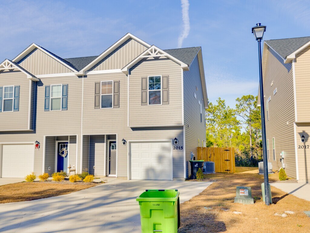 Well designed 3 bedroom, 2.5 bath townhouse located in Folkstone Woods in Holly Ridge. Luxury vinyl plank flooring throughout the bottom level. Open living room, kitchen and dining room perfect for entertaining. First floor powder room and 1 car garage. Upstairs you will find a spacious primary bedroom with plenty of room for a king bed and wait until you see the size of the walk-in closet! The Ensuite bathroom has dual vanities and a stand-up shower. Down the hall is a full bathroom with tub/shower combination and two guest bedrooms. Washer/dryer are located on the top floor. Downstairs is a covered back porch and a fenced in backyard. Well designed 3 bedroom, 2.5 bath townhouse located in Folkstone Woods in Holly Ridge. Luxury vinyl plank flooring throughout the bottom level. Open living room, kitchen and dining room perfect for entertaining. First floor powder room and 1 car garage. Upstairs you will find a spacious primary bedroom with plenty of room for a king bed and wait until you see the size of the walk-in closet! The Ensuite bathroom has dual vanities and a stand-up shower. Down the hall is a full bathroom with tub/shower combination and two guest bedrooms. Washer/dryer are located on the top floor. Downstairs is a covered back porch and a fenced in backyard.