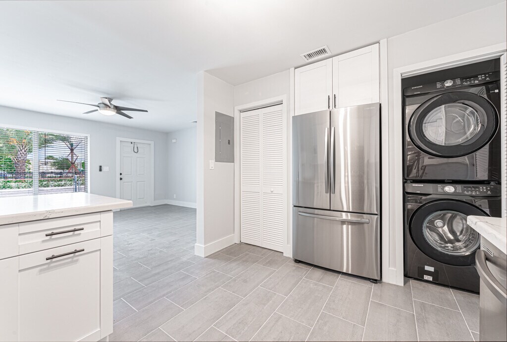 In heart of West Palm Beach's Warehouse District! Close to everything Downtown. This Fully Renovated Oasis apartment offers a modern and stylish living experience. Step inside and be greeted by the sleek and tastefully designed kitchen, All Samsung appliances. The apartment also boasts the convenience of having a washer and dryer right in the unit, making laundry days a breeze. With its prime location, you'll be just minutes away from the local beaches, hospitals, and downtown West Palm Beach. Enjoy the vibrant atmosphere of City Place, where you'll find an array of shops, restaurants, and entertainment close by. Private parking on Location 620 min credit score, rental application, proof of income, F, L & S. req. Feels like Single Fam living. *Photos with furniture are staged. Furniture not included