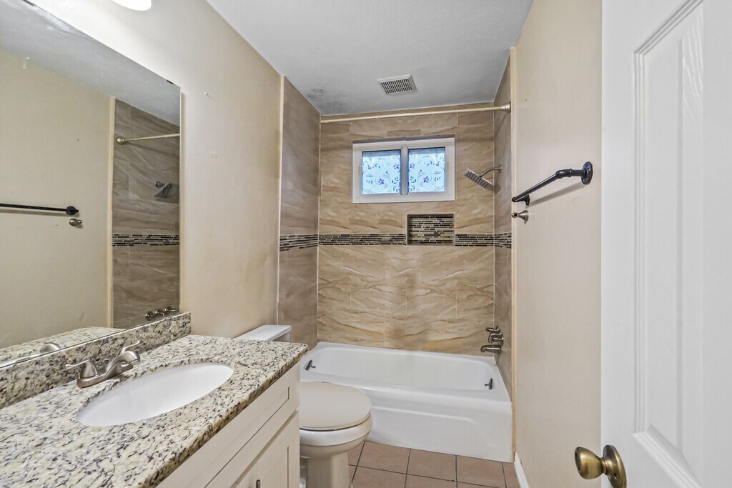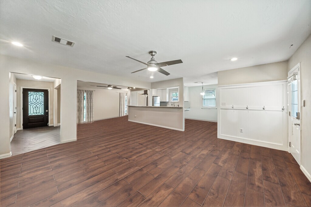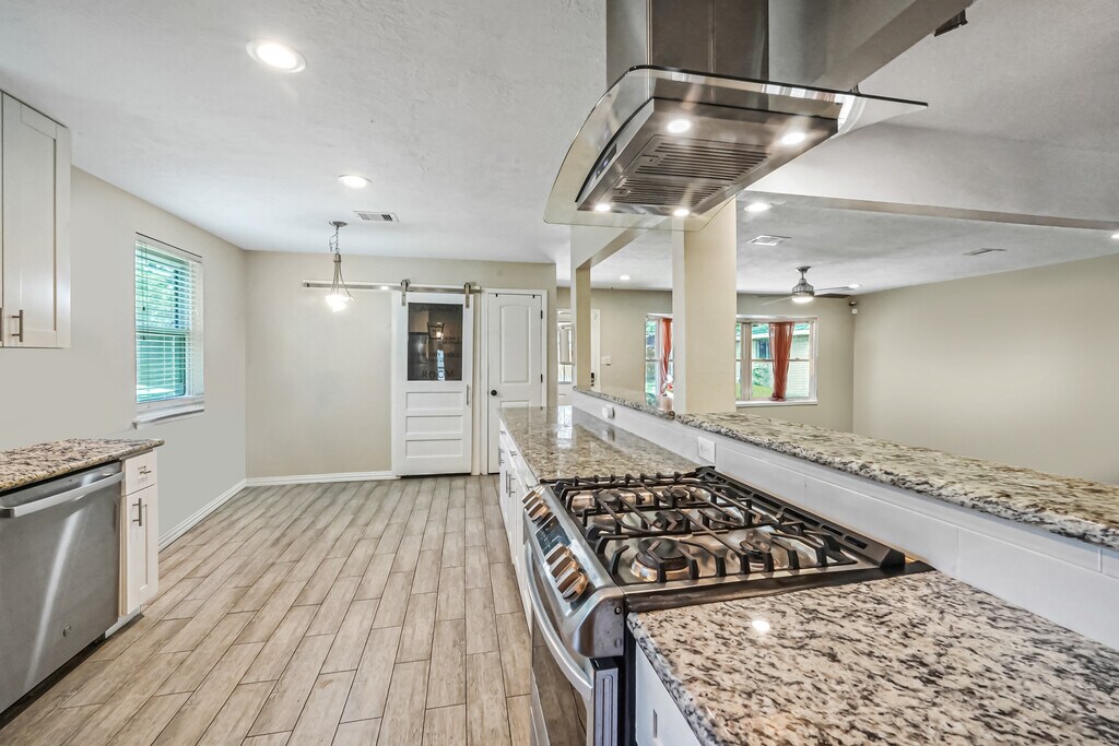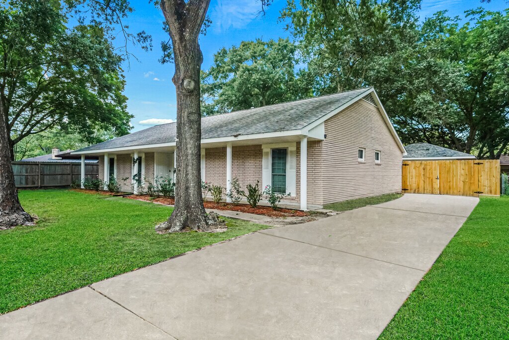 This stunning one-story home in Clear Lake City's desirable neighborhood features an open floor plan with 4 spacious bedrooms and 2 baths. The inviting living area has ceramic hardwood floors, neutral tones, and tasteful finishes. A gourmet kitchen boasts granite countertops, gas cooktop, and stainless steel appliances for a home chef. The family room offers an open concept and natural lighting for sophistication, while a versatile front entry room fits multipurpose needs. Enjoy a large backyard and patio alongside a primary suite with a private en-suite bathroom. The guest bathroom has granite counters and tiled tub/shower combo. House comes with Water Softener so clear water comes from the tap. Benefit from nearby amenities like hike/bike trails, tennis courts, swimming pool, fitness center, shopping hubs, dining venues, and I-45 access within the thriving community. Pets welcome with a $500 deposit fee.