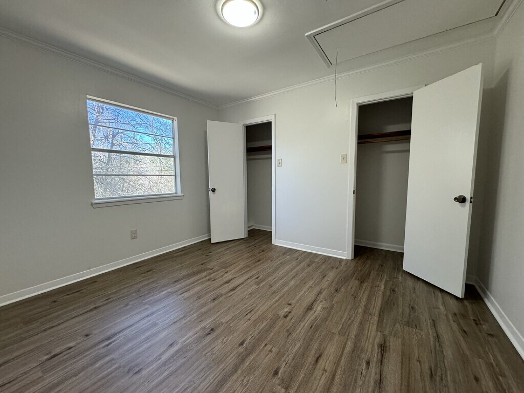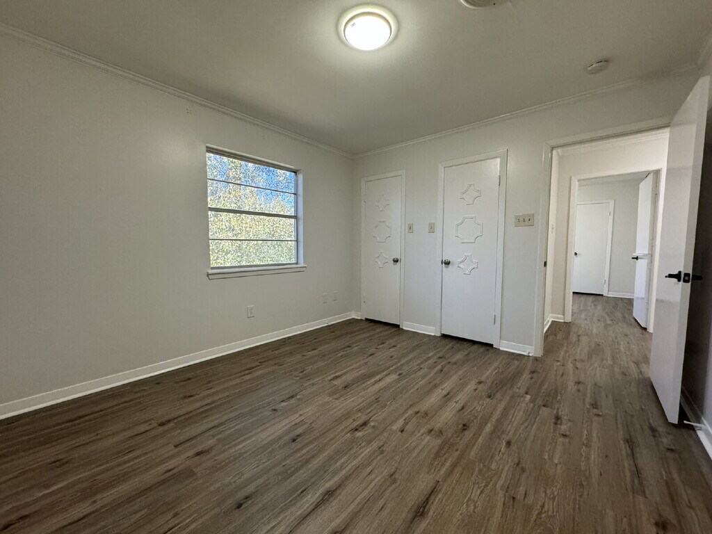The kitchen features a walk in pantry, single basin sink, range, dishwasher, and refrigerator as well as adjoining dining area. Every bedroom has abundant closet space with two bedrooms boasting walking closets. The living room (could be third bedroom) has a built in desk area, cabinets, and walk in storage. Stackable washer and dryer provided. Utilities billed in addition to rent $300 per month not including cable/internet. Balcony patio usage for this unit only - Fenced yard not included in lease of this unit. Gross Income must be 3 times the monthly rent. No evictions or criminal background. Will check credit. Owner makes final decision to lease. Deposit on approval is one month's rent. Tenants will maintain renters insurance. Pets permitted with owner approval - $350 per pet non-refundable pet deposit. Submit photos of pet with breed, size, age, and vaccine records with application.