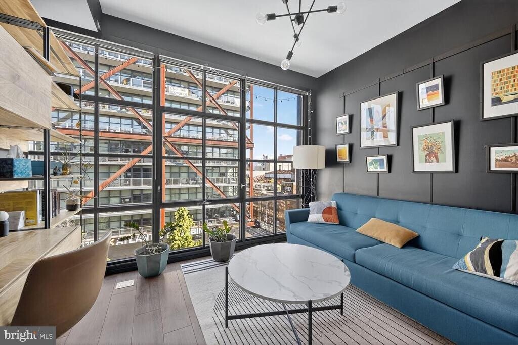 Welcome to 2030 8th St NW #507, a sophisticated upper-floor residence in the acclaimed Atlantic Plumbing Condominium. Designed by celebrated New York architect Morris Adjmi, the building’s striking steel-and-glass facade honors its industrial past while delivering modern boutique living. This home is designed around a true one-bedroom plus a spacious den/bedroom with full closet and sliding doors. The den/bedroom functions seamlessly as a second bedroom, private office, or guest retreat, giving you the flexibility of a two-bedroom layout. Inside, ceilings soar above 10 feet high and oversized industrial-style windows flood the interiors with natural light. Wide-plank European oak floors add warmth throughout. The open-concept kitchen features bespoke cabinetry, custom lighting, white quartz counters, and Bosch/Bloomberg appliances, creating a space that is as stylish as it is functional. The primary bedroom includes a walk-in closet and window treatments, while the den/second bedroom benefits from a custom closet installation. A sliding door allows the bedroom and bath to be set apart for complete privacy. Atlantic Plumbing brings amenity convenience directly to your doorstep: a spectacular rooftop terrace with outdoor kitchen, a state-of-the-art fitness center, and secure bike storage. Residents may also access the main Atlantic Plumbing building across V Street, which offers additional community amenities, including a rooftop pool, for an added fee, and parking for rent. This address is rated a Walker’s Paradise with a 99 Walk Score. Whole Foods is half a block away, and neighborhood favorites include Compass Coffee, Warby Parker, Aesop, Le Labo, and Bonobos. Across the street, enjoy cocktails and films at Landmark’s Atlantic Plumbing Cinema or catch a show at the legendary 9:30 Club. For effortless commuting, the Shaw–U Street Metro is just two blocks away. Residence #507 combines architectural pedigree, modern amenities, and unmatched walkability, delivering an elevated home in one of DC’s most dynamic neighborhoods.