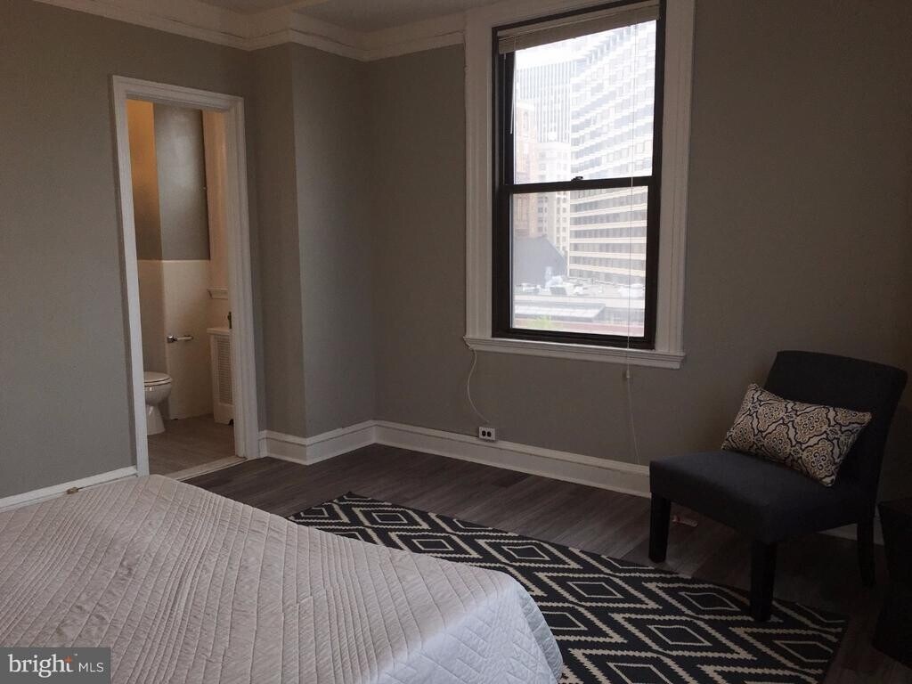 Renovated one bedroom, one bathroom home just a half of a block from Rittenhouse Square! This like-new home features an open kitchen with a breakfast bar, wood cabinetry, quartz countertops, stainless steel appliances, and tile backsplash. The kitchen overlooks the spacious living/dining area which showcases plenty of natural light. There is a spacious bedroom with a large closet that enjoys use of a nearby updated bathroom with a modern vanity and subway tile surround. The home has wood-like floors throughout. The Carlyle is a pet-friendly, doorman building only one block from Rittenhouse Square. Rent includes the security of a 24-hour doorman and use of the building's state-of-the-art gym. Tenants are responsible for paying all utilities.