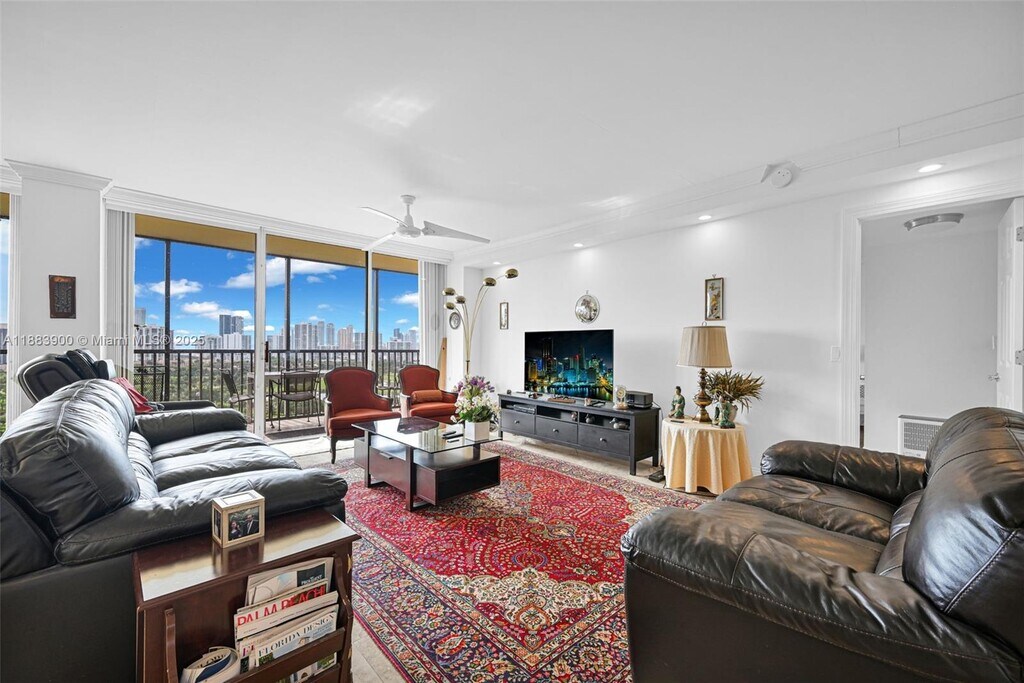 Rare, Oversized 3/3 Condo in the Heart of Aventura with Panoramic Views! Discover an exceptional opportunity in Aventura! This unique 2,226 sq. ft. residence was created by combining two units, offering a rare and expansive 3-bedroom, 3-bathroom layout. Enjoy breathtaking panoramic views spanning the Ocean, Aventura golf course, and city skyline. The unit features a modern, remodeled kitchen with quartz counters and white cabinetry, a dedicated home office, and two private balconies with installed accordion shutters. Practical perks include two assigned parking spaces and two storage units. The HOA covers water, cable, and internet. Residents enjoy premium amenities: a pool, sauna, and fitness center. Live minutes from Tidalcove Water Park, top-rated dining, and shopping. This is luxury, space, and convenience combined!