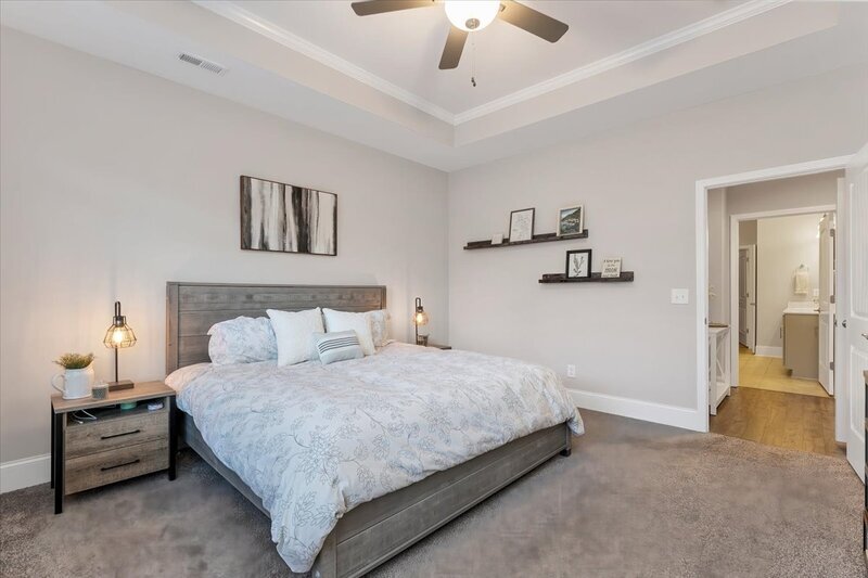 Welcome to the charming Eagle Point Cottages within Mid South Club. This Torino II Bungalow-style floor plan is golf-front, bright, spacious, and inviting. Through the wide foyer, you have a front bedroom and bathroom to the left. Step into your chef's kitchen and prepare to be wowed! The extra-large island is absolutely beautiful. Welcome to the future with a wifi compatible double oven as well as a gas cooktop. Across from the kitchen and living room, set up your ultimate office/flex space with french doors. The master suite is located on the main level with a foyer between the bathroom which boasts an L-shaped walk-in shower, double vanities, and his-and-hers walk-in closets that are also conveniently attached to the laundry room. Head upstairs to the third bedroom, full bathroom, great room, and walk-in attic storage. Wifi, phone, TV, and grass mowing are included in the base rent price! Tesla owners - there is a built-in charger in the garage! Tenants may opt into Mid South Club Membership at their own expense. Pets are negotiable on a case-by-case basis with a non-refundable pet fee deposit.