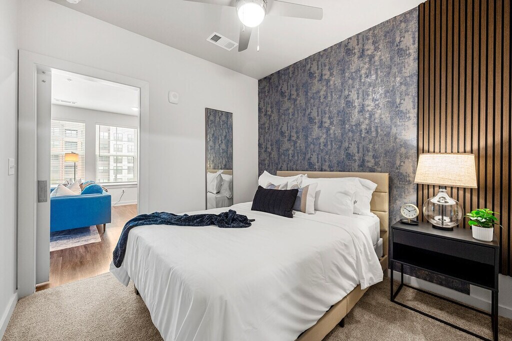 Feel at home in this brand new chic and cozy 2-bedroom apartment located in the heart of West Midtown, Atlanta. This stylish retreat blends modern design with comfort, offering a serene escape amidst the city's vibrant energy. The open-concept living area is adorned with contemporary furnishings and leads to a fully equipped kitchen. Enjoy your morning coffee on the private balcony with city views. This apartment is your perfect home base for exploring all that Atlanta has to offer. To ensure an exceptional experience, the primary guest must be 25 years or older to book and provide a valid government-issued ID prior to check-in for verification. A $500 non-refundable fee will be charged for any smoking-related incidents, as this property is 100% smoke-free. [SI]