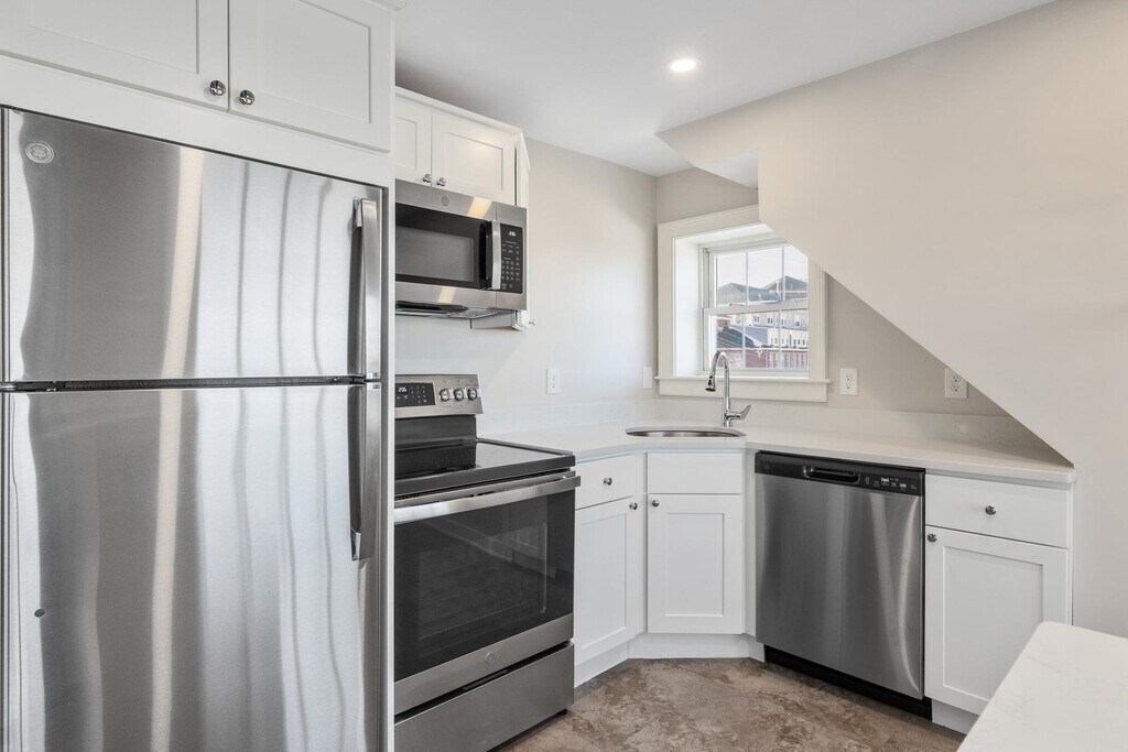 WATERFRONT LIVING in the heart of downtown Portsmouth, includes one on-site assigned parking space. Welcome to 205 Market Street, UNIT #5. This BEAUTIFULLY RENOVATED 4th floor PENTHOUSE apartment offers 2 spacious bedrooms, 1 bath with 1019 square feet of living space. Enjoy breathtaking Piscataqua River views, watch the famous Moran tugboats guide ships through the Memorial Bridge and take in the excitement of watching a working port. Loaded with natural light, bursting with charm, including exposed beams and brick. Renovated in 2023, including new flooring, a new kitchen, bath & lighting. The open concept kitchen a dishwasher, quartz tops and white shaker style cabinetry. Heat, hot water, water & sewer, trash are INCLUDED in the rent. Tenant is responsible for cable, internet, phone & electricity. Shared free laundry facility on site. One onsite parking space included. This is a dream opportunity to live on the waterfront steps from Portsmouth’s thriving restaurants, coffee shops, boutique shopping, art galleries, The Music Hall, Seacoast Rep, Strawberry Banke, Prescott Park…the list goes on. Set up a private showing today and come experience downtown waterfront living. 12-month lease minimum, NO PETS, no smoking, credit & background checks required. Floor plan is available on request. MLS# 5069135