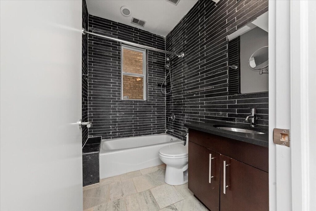 Located in the heart of Bucktown, this 2 bedroom 1 bathroom apartment just steps from Milwaukee Avenue's vibrant shops and dining, this stylish condo offers the perfect blend of comfort and convenience. Tucked inside a quiet, well-maintained building, the home features in-unit laundry, central air with a Nest thermostat, and a private back porch ideal for relaxing or entertaining. The kitchen boasts granite countertops, a clean white tile backsplash, dark modern cabinetry, and a full suite of stainless steel appliances, including a dishwasher, garbage disposal, and reverse osmosis (RO) water filtration system. The bathroom is a design standout with gray brick-look tile walls and a dual showerhead setup offering both handheld and traditional nozzles. Enjoy a refined urban lifestyle in one of Chicago's most sought-after neighborhoods