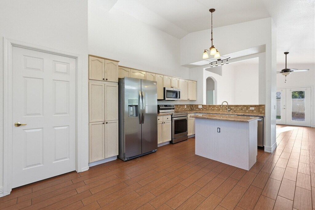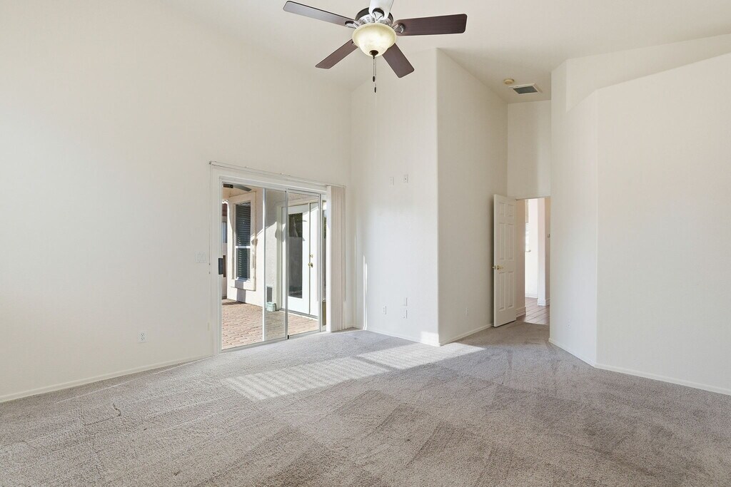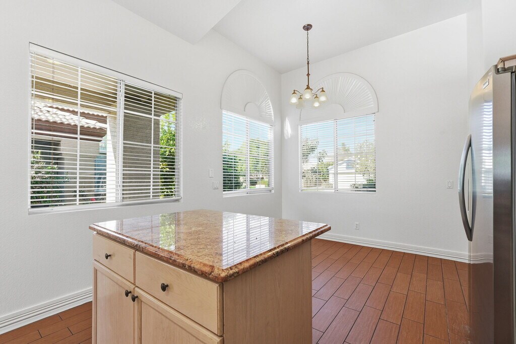 Ben KoernerTHIS IS THE ONE and it's MOVE-IN READY! The open layout of this home features vaulted ceilings, abundant natural light, and an eat-in kitchen with granite counters, a gorgeous backsplash, and stainless appliances including the fridge. The great room french doors open to a stunning backyard with a covered patio, paver extension, artificial turf, and a beehive fireplace perfect for cozy winter nights. The primary suite offers a walk-in closet, double sinks, modern finishes, and direct patio access, while the second bath includes granite counters and updated fixtures. The front curb appeal of the artificial turf and strategically placed paver walkways is unmatched. Val Vista Lakes community offers amenities such as pool, spa, clubhouse, walking paths, and nearby shops, dining, and the SR-60.