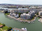 Welcome to Port Liberté, a one-of-a-kind waterfront community on the Hudson River with breathtaking views of NYC. Just 7 minutes to the Grove Street PATH via shuttle or 20 minutes to Manhattan on the Port Liberté Ferry. Residents enjoy an unmatched lifestyle with tennis and basketball courts, two outdoor pools, a playground, dog park, fully equipped gym and studio, Growing Seeds Learning Academy, 24-hour gated security, and waterfront dining at Hudson House. Boaters will love the available dock rentals. This 1,345 sq. ft. renovated home offers a smart split-bedroom layout for added privacy, two full baths, and two private balconies perfect for relaxing or entertaining. The oversized primary suite includes a walk-in closet and en-suite marble bath with whirlpool tub. The second bedroom provides ample closet space, with a pristine full bath nearby. Sliding doors from the living area open to one of your balconies, bringing in great light and fresh air. Recessed lighting throughout. Additional features include new bamboo wooden flooring, central air, in-home laundry, and garage parking. Rent covers water, hot water, and garage parking. Pets welcome—apply today!