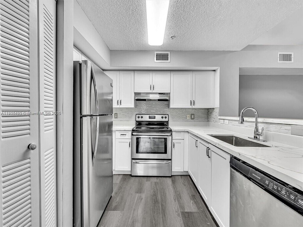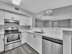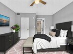 Enjoy modern, low-maintenance living in this beautifully updated 2-bed, 2-bath top-floor condo in the gated Enclave at Miramar. This bright and spacious home features high ceilings, new laminate flooring, fresh neutral paint, and a private balcony with peaceful views. The split-bedroom layout offers excellent privacy, and the primary suite includes a walk-in closet and full-size washer & dryer for added convenience. The Enclave offers resort-style amenities including a lakeside pool, fitness center, clubhouse, business center, tennis and racquetball courts, pet areas, and walking trails—perfect for an active lifestyle. Conveniently located minutes from major highways, shopping, dining, and top schools. Water and trash included. Some photos may be virtually staged.