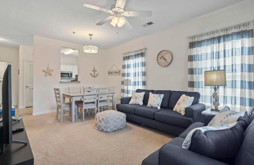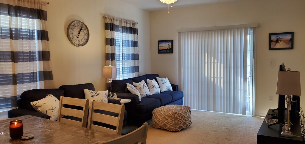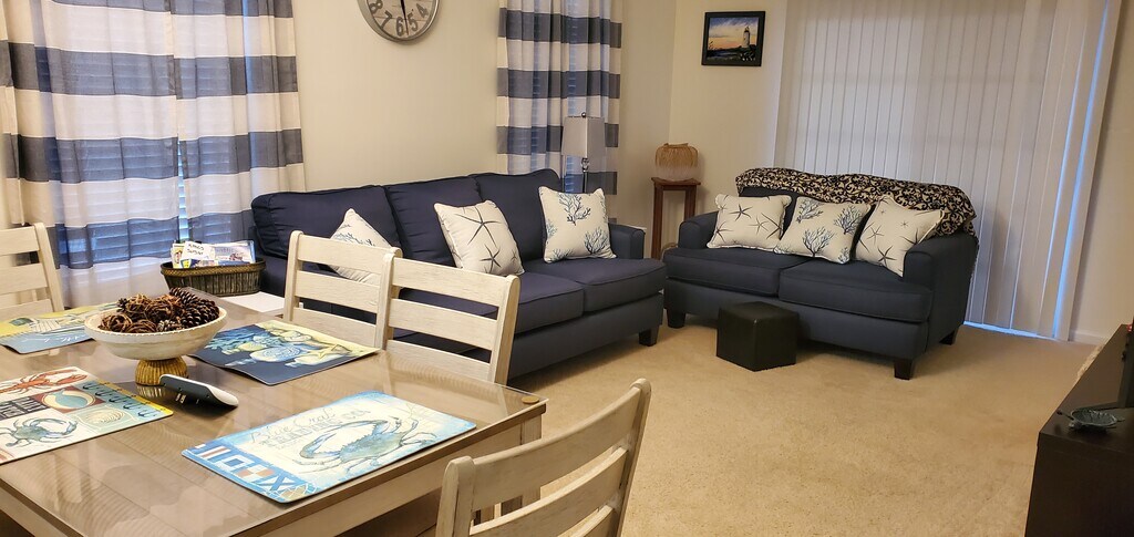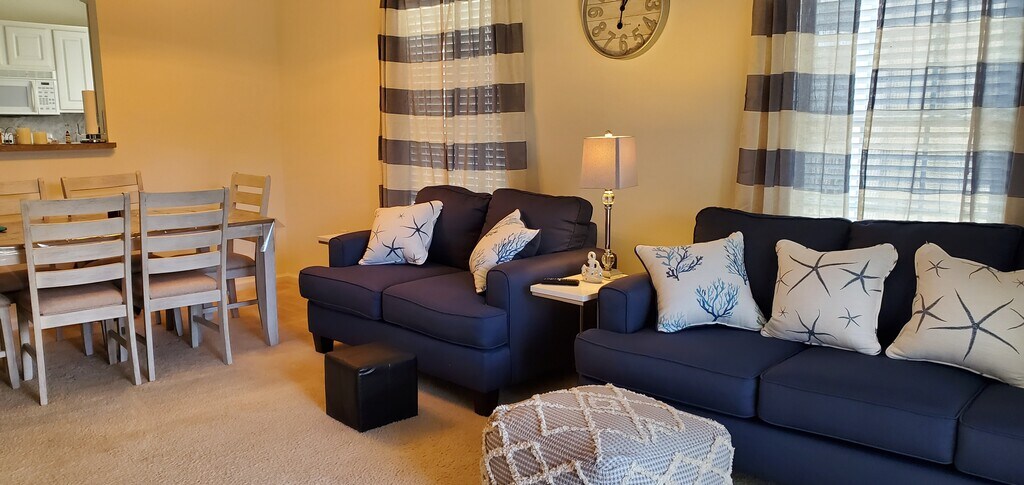 Quiet 2 Bedroom 2 Full Bath (end unit) fully-furnished condo in Surfside Beach/MB with a fully-stocked kitchen, all new furniture including living room, and master bedroom. The second bedroom has a queen bed and tropical furnishings. Furniture for the second bedroom was just ordered- photos will be posted shortly. This condo accommodates no more than 4 people. Note: It has my furniture in unit so you cannot take yours. Unit is perfect for 3-12 month rental while making a transition to the Myrtle Beach- for traveling nurses, corporate employees or snow birds. Conveniently located near Highway 17 Bypass, Highway 17 Business (kings hwy). Next to shops, restaurants, near Hwy 544 shopping district, as well as just south of Market Common Town Center. It is 5 minute drive to the beaches, area attractions and state parks. The airport is 13 minutes away. Condo is also close to area hospitals, medical centers and doctor offices for those in the medical profession looking for a nice place to live. Includes a community pool and bbq grills. Utilities included in your rent are water, sewer, pest control, garbage, ground maintenance and wifi. Tenant is responsible for Wifi and electric. Background/criminal, financial check will be necessary. NO PETS/NO SMOKING. Long term-security Deposit/background check/ Credit score 640. Electric bill will be paid by tenant. Terms above apply to annual rentals only. App fee refunded ONLY if accepted. Six months proof of income required for annual rentals. Rentals must be 90 days or more. Move in prior to November 1, 2025 and get background/criminal/credit check reimbursed ONLY if accepted.