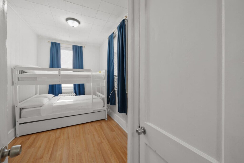 Experience easy access to New York City while staying in this bright and comfortable 2-bedroom home in Bayonne. With space for up to eight guests, this home is perfect for families, business travelers, or small groups looking for a convenient base near the city. Feel at home in this apartment. This welcoming 2-bedroom, 1-bathroom apartment blends comfort and practicality for families and groups. The open living and dining area is perfect for gathering, and the home includes high-speed Wi-Fi, a fully stocked kitchen, and thoughtful touches throughout. The kitchen is fully equipped with full-size appliances, cookware, and dining essentials for home-style meals. If you are driving, you’ll have dedicated on-site parking for your convenience, plus easy access to public transit options throughout the city. Bayonne offers a relaxed, family-friendly environment just minutes from Manhattan. The home is steps from Hudson County Park, local cafes, bakeries, and neighborhood favorites. You are also close to the Cape Liberty Cruise Port, Prudential Center, MetLife Stadium, and American Dream Mall, which features Nickelodeon Universe and DreamWorks Water Park. Bayonne’s location gives you the best of both worlds — suburban comfort and city access. Reaching Manhattan and nearby attractions is simple via bus (30–45 minutes to Port Authority or the World Trade Center) or light rail (25–40 minutes to various NYC connections including Brooklyn and Staten Island). Newark Airport is 15 minutes away, JFK is 50 minutes away, and LaGuardia is 45 minutes away. No parties, events, or large gatherings are allowed, and quiet hours are from 10:00 PM to 8:00 AM to respect the neighbors. The penalty for violating this rule is $500.00. Strictly no smoking or vaping is allowed inside and outside the property. Only registered guests are allowed on the property. No unregistered visitors are allowed without prior approval. Bedroom 1 features a queen bed with a dedicated office space, ideal for remote work or business travelers. [SI]