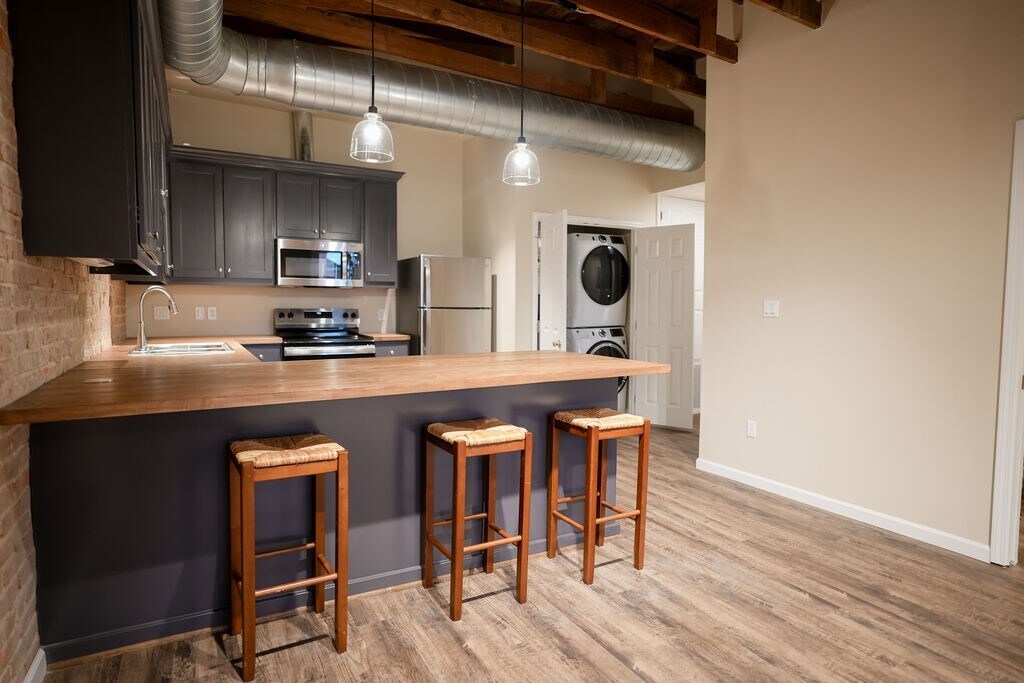 One-Bedroom Loft Apartment! This recently renovated one-bedroom loft offers the perfect balance of architectural character and modern comfort. Designed for upscale residential living,the space provides both openness and privacy with a dedicated bedroom. Exposed brick walls,wood-beam ceilings,and contemporary finishes create a refined loft atmosphere,while large windows fill the apartment with natural light. The separate bedroom allows for quiet retreat or a private workspace,making the layout ideal for flexible use. Located in the downtown district,the property boasts excellent walkability to shops,restaurants,and local conveniences,an ideal setting for both lifestyle and professional needs. All appliances are included for ease and functionality. Tenants also enjoy access to a shared outdoor deck,offering additional space to relax or entertain. MLS# 90684011