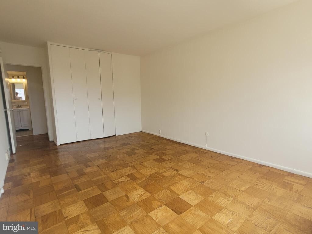 Sun soaked studio at the Society Hill Towers. This home has a large living area with floor-to-ceiling windows and parquet wood floors. The galley style kitchen has white cabinetry and appliances. There is a separate dressing area with walk-in closet and a full bathroom with shower/tub combination and tile floors. Residents of Society Hill Towers enjoy a 24 hour doorman, underground parking, access to the fitness room and outdoor pool for a fee, available hospitality suite for a fee, on-site Philly Car Share, coin operated laundry room in basement, and shopping plaza on site with market, dry cleaner and beauty salon.
