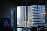 This full-sized bedroom (with locked full door — not all units have full locked doors), full-sized granite kitchen with movable granite island, full-sized living room, full-sized bathroom, spacious balcony with expansive city views, exclusively yours car park garage, and a private with lock storage room (not all units have storage rooms) home has an estimated 650 square feet plus a balcony facing the city, Blumenthal Theater and Bank of America headquarters. Walk next door to Basil, Capitol Grill and other great and popular restaurants. From a distance, you can see the Bank of America Football stadium. Very sunny bedroom and living room areas with high ceilings and tall floor-to-ceiling glass windows: you get to see part of sunrise at 10 AM and sunshine all the way to sunset. Your bedroom has a sliding door to your own private and spacious balcony overlooking the city and looking down — from your 18th floor — the swimming pool which is located outside at the 10th floor where the gym and other amenities are located. This home has extensive upgrades from the get go: all hardwood floors, stainless steel appliances, granite counter tops, surround-sound speakers in the living room, bedroom and even in the bathroom! And of course, thorough maintenance have kept this home in prime condition. You’ll love the hardwood floors, surround-sounds, and private bedroom with locked doors (door to the bedroom main entrance and doors to the bathroom). All these, among other things, create a very comfortable, auditory, and private living space. Pets negotiable -- must be approved by the owner. for more information. visit our website at 210Avenue dot com.
