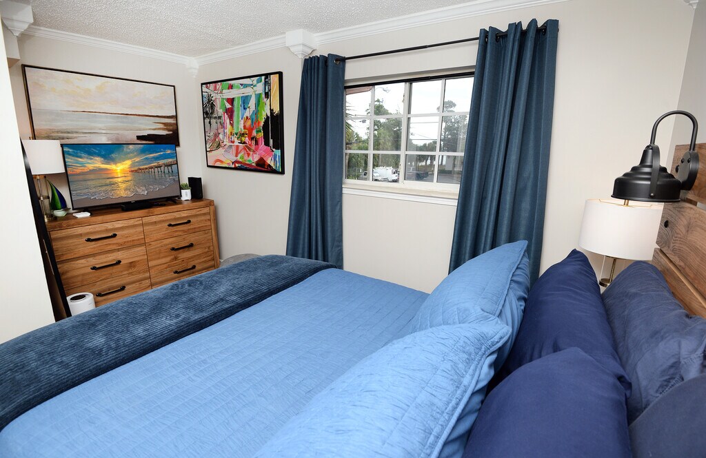 Live the resort lifestyle in style and comfort! This beautifully renovated and immaculately clean 1-bedroom, 1-bathroom condo at the highly desirable Landmark at St. Andrews Condominiums offers a peaceful bayfront retreat with views. Owner’s personal home, owner-managed, and meticulously maintained, it’s perfect for those seeking turnkey convenience and exceptional amenities. Escape to coastal tranquility: Step into an open-concept living, dining, and gourmet kitchen space, complete with modern furnishings and everything you need for a comfortable stay. Relax on your private patio overlooking beautiful St. Andrews Bay, or stroll just steps to your own private beach. Upgrades & Comforts: • Stylish new furnishings and tasteful décor • Fully stocked gourmet kitchen for home cooking • Dedicated office with standing desk, monitor, and printer—ideal for remote work or healthcare professionals • All utilities included (electric, water, high-speed internet, cable) • Complimentary monthly cleaning service to keep things spotless • Cleaning supplies and essentials provided Community & Lifestyle: • Landmark’s resort amenities: two sparkling swimming pools, private beach, fishing dock, outdoor grills and picnic areas, fitness center, community room, and beautifully maintained grounds • Quiet, walkable St. Andrews neighborhood with parks, dining, and shopping just minutes away • 90-day minimum stay required—perfect for professionals, couples, or those needing extended housing Prime Location: • 3.3 miles to Gulf Regional Hospital | 2.9 miles to Bay Medical Hospital • Easy access to Tyndall AFB, Naval Support Activity Panama City • Short drive to downtown, restaurants, and the world-famous white sand beaches of the Emerald Coast Rental Details: • 1 bedroom (dedicated)- Bedroom 2 is a dedicated office, 1 bathroom – maximum occupancy: 2 • Fully furnished & all-inclusive (utilities, cable, internet, monthly cleaning) • Dedicated workspace for traveling professionals • Pet-friendly community park nearby and beautiful walkways • Available now—90-day minimum stay per HOA • Ready for relaxed, resort-style living in a prime coastal location? Contact today to schedule your private showing or more information. Start your next chapter in St. Andrews Landmark Coastal Haven—luxury, comfort, and convenience await!