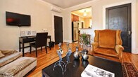 Feel at home in this charming and comfortable 1-bedroom apartment located on the second floor of a building on a quiet residential street in Historic Dilworth, 1.5 miles from Uptown. This apartment is perfect for long- or short-term stays and features a fully equipped kitchen, Wi-Fi, and a sun patio for dining and relaxing. The fully equipped kitchen includes brand new cabinets, quartz countertops, stainless steel appliances including a gas range and refrigerator with ice maker, and a garlic press. In-unit amenities include a full-size washer and dryer, 400-thread count linens, Egyptian cotton towels, a desk, a small stereo CD player with a place for your iPod or MP3 player, and a large flat screen television in the living room and bedroom. Enjoy the large sun patio overlooking the front lawn. A common area with a gas grill and outdoor dining is also available. Pets are welcome with a fee of $59 per dog (two maximum). If you do not register your dog, you will be charged $120 per dog. A 7-day pass to Charlotte’s biggest and best fitness center, the Dowd Y, is $50. Onsite parking is available. Located just 1.5 miles from the central business district (Uptown), you'll be able to walk to 3 parks, two full-service grocery stores, 40+ restaurants (Thai, vegan/raw, Indian, Italian, Peruvian, new American etc.) massage studios, coffee shops, art galleries, consignment stores, neighborhood pubs and other amenities, along wide sidewalks under huge willow oak trees. A transit stop 1/2 block away provides bus service directly to Uptown, the Convention Center/Time Warner Arena/Panthers Stadium and in the other direction to SouthPark (upscale shopping) every 15-20 minutes. The Lynx Blue Line light rail is only a 15-minute walk away, with trains going directly Uptown in 10 minutes. Carolinas Medical Center (Levine Children's Hospital) is 4 minutes away by car, or an easy 15-20 minute walk. Dogs are never allowed on the furniture or bed. If there is hair on the furniture, excess hair in the home, stains, damage, or waste found in the yard or home, you will be charged an additional fee. Quiet hours are observed between 10pm and 7am. Parties, additional guests, events, or large gatherings are not permitted. Smoking and vaping are not allowed inside/outside the home or building. Guests must be at least 21 years old to make a reservation. [SI]