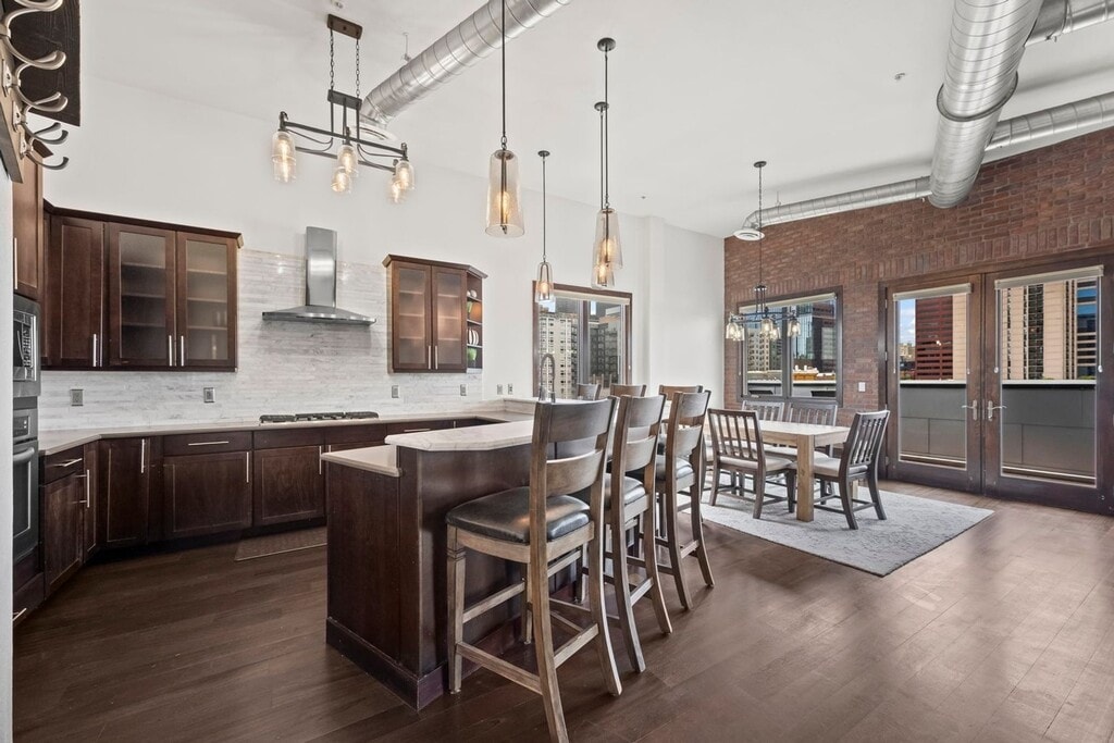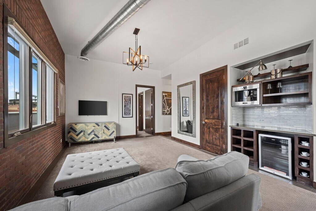 Live in the heart of downtown Denver just steps from Coors Field with stunning mountain views! This immaculate 1,272 sq ft corner industrial-luxury loft features a massive wrap-around terrace and the only permitted private hot tub in the building. Bright open layout with floor-to-ceiling windows, hardwood floors, and exposed ductwork throughout. The chef’s kitchen offers stainless steel appliances, stone countertops, custom cabinetry, breakfast bar, and opens to the great room and terrace—perfect for entertaining. The primary suite includes terrace access, walk-in closet, and private bath. Guest bedroom, spa-style slate bath with soaking tub, and in-unit laundry. Historic 1896 brick building with rooftop patio, underground parking, and extra storage. Walk to Union Station, LoDo, Ballpark, restaurants, shops, and nightlife. Rare opportunity in one of Denver’s best locations!