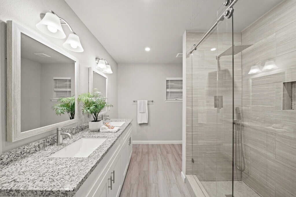 Welcome to 2106 N. Galveston, a beautifully renovated 1950s home nestled in Pearland’s historic Old Town Site featuring a stunning chef’s kitchen with granite countertops, stainless steel appliances, a breakfast bar, center island, and a gorgeous navy tile backsplash. Enjoy spacious living and dining areas, a dedicated home office, and an oversized primary bedroom with a huge walk-in closet and a spa-like ensuite bath with a rainfall showerhead. Updates include a recent roof, recent windows, recent HVAC, luxury vinyl flooring, and fresh paint throughout. Outside offers a fully fenced backyard perfect for relaxation and outdoor entertainment and an oversized garage ideal for parking, storage, or projects. Conveniently located near award-winning Pearland ISD schools, community parks, shopping, and dining, and offering quick access to major thoroughfares for a quick commute, this home is perfect for anyone seeking charm, comfort, and convenience in the heart of Pearland.Vinyl