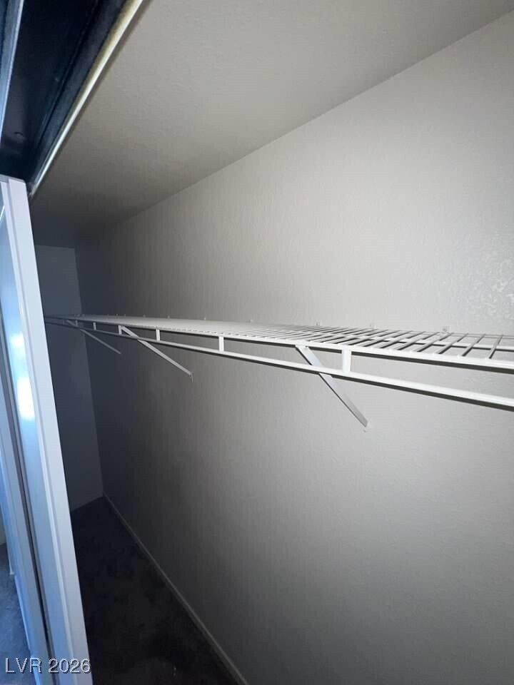 Upstairs condo with mountain and city views near Sunrise Mountain. Kitchen features granite counter tops, tile backsplash and stainless steel appliances. Wood laminate flooring. Primary bedroom with ceiling fan and mirrored wardrobe doors. Primary bath with double sinks. High ceilings, covered patio and security door. Gated community with pool/spa.