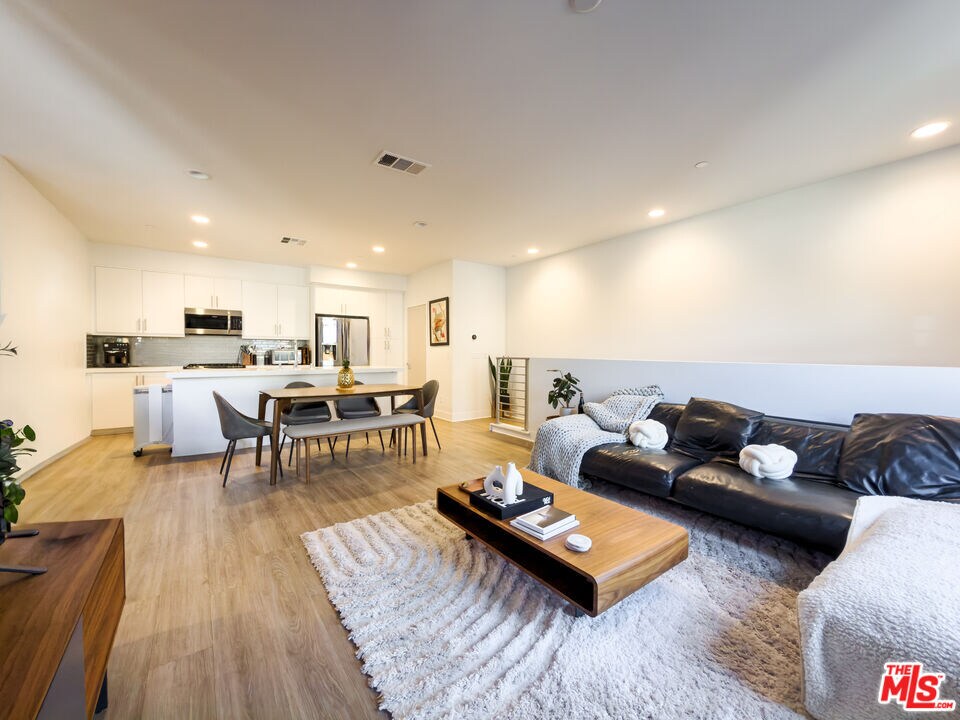 Welcome to one of Hollywood's most coveted addresses, a stunning 2018-built townhouse-style condo nestled within a sleek, gated community just moments from the best dining, entertainment, and culture the city has to offer. Spanning 1,588 square feet across multiple levels, this thoughtfully designed residence delivers the space and privacy of a home with the ease of modern condo living, ideal for young professionals and creatives who want to be at the center of it all while staying connected to every corner of LA via the 101 and 405 freeways. The sun-drenched main level features an open-concept kitchen, dining, and living area with warm hardwood-style flooring, recessed lighting, and a clean, contemporary aesthetic throughout. The chef's kitchen impresses with crisp white cabinetry, a subway tile backsplash, stainless steel appliances, and a generous island perfect for entertaining. The dining area flows seamlessly into a relaxed living room with a private balcony, ideal for morning coffee or evening unwinding.Upstairs, two spacious en-suite bedrooms each offer their own full bath, with the primary suite featuring a large walk-in closet with built-in shelving and drawers an organizer's dream. A convenient powder room on the main level rounds out the thoughtful layout. An in-unit washer and dryer adds everyday convenience.The crown jewel of the home is the expansive private rooftop terrace a true outdoor living room complete with string lights, a gas BBQ, and lounge seating with open sky views across the Hollywood Hills. A charming covered alcove off the terrace offers the perfect nook for a home office with a view, making remote work or study feel anything but ordinary. It's the ideal space to host, create, or simply decompress above the city. Additional highlights include a 2-car tandem garage, 4 guest parking spots, a dog run, and gated security. Trash is covered by the landlord; tenant is responsible for electricity, water and gas. This is Hollywood living at its finest a rare opportunity for those who demand both style and substance in the heart of LA. MLS# 26690537