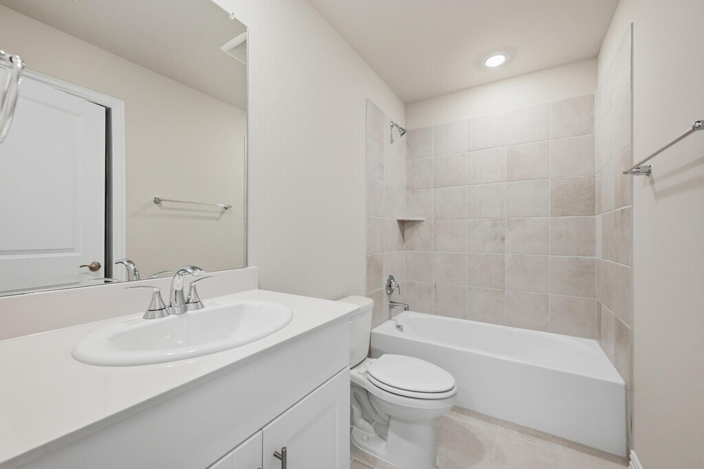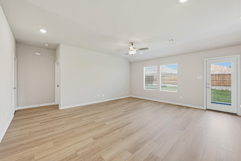 2025 New Construction – Spacious 3 Bedroom, 2 Bathroom Home with Garage and Modern Upgrades, Scenic Views and Community Amenities Be the very first to call this brand new 2025 construction home your own. Featuring 3 spacious bedrooms, 2 full bathrooms, and a 2 car garage, this home combines modern finishes, thoughtful design, and neighborhood amenities that make it the perfect place to live. Inside, you will find an open concept layout that is ideal for both everyday living and entertaining. The kitchen stands out with sleek quartz countertops, stainless steel appliances, and abundant cabinet space, as well as a large island that is perfect for meal preparation or casual dining. Durable vinyl flooring flows through the main living spaces, while soft carpet in the bedrooms provides warmth and comfort. The primary suite offers a private bathroom and a generous walk in closet, while the additional bedrooms provide versatility for family, guests, or a home office. Both bathrooms include stylish finishes that create a modern and inviting atmosphere. For added convenience, the home comes fully equipped with a refrigerator, washer, and dryer, making move in simple and stress free. Step outside to enjoy a private fenced backyard that backs to a scenic greenbelt, offering peaceful views and space for outdoor living. The community itself adds even more value, with access to walking trails and a playground that create a welcoming and active neighborhood environment. Key Features: 3 bedrooms and 2 bathrooms Open concept layout with quartz countertops Stainless steel appliances including refrigerator Washer and dryer included Vinyl flooring in main areas with carpet in bedrooms 2 car garage Private fenced backyard with greenbelt views Neighborhood playground and walking trails This home offers modern living, convenience, and comfort all in one. Schedule your showing today and make this brand new home yours.