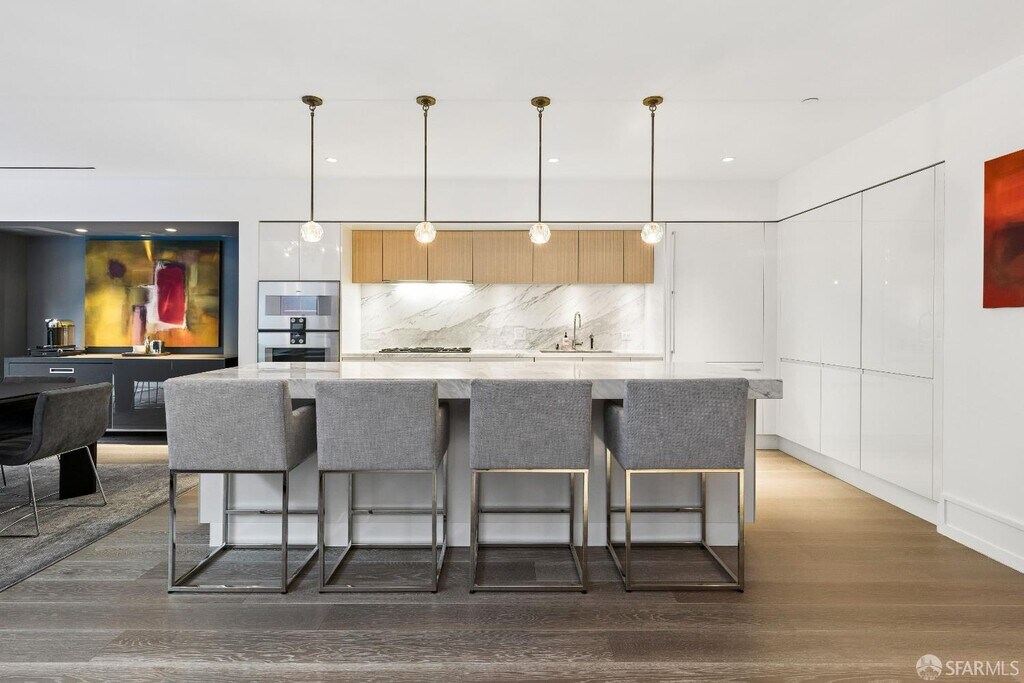 Furnished Lease Available! Conceived to reflect the scale and privacy of a single-family home, this 2,685sq.ft. townhouse at The Pacific unfolds across three levels with a thoughtful and highly livable floor plan. Three bedrooms and four baths include a serene, primary suite, complete with a marble-clad bath and generous custom wardrobe. The main level is defined by volume with double-height ceilings and walls of glass framing the 845sq.ft. outdoor terrace. A beautifully appointed kitchenfeaturing Arclinea cabinetry, marble surfaces, and Gaggenau appliancesanchors the space, flowing seamlessly into informal living and dining areas. French doors open to the terrace offering a quiet extension of the home for both everyday living and entertaining. Throughout, a curated palette of materials and finishes reflects understated sophistication and enduring quality. Modern conveniences, including central air conditioning, in-residence laundry, and secure parking are seamlessly integrated. Residents of The Pacific enjoy a level of service and amenity synonymous with the finest residential buildings, including 24-hour doorstaff, concierge, a fitness center, yoga garden, and a penthouse-level, fireside lounge with an outdoor Golden Gate Bridge Observatory. Ideally situated just moments from the boutiques, cafs, and restaurants of Fillmore Street, this Townhouse lives in one of San Francisco's most coveted neighborhoods. MLS # 426113943