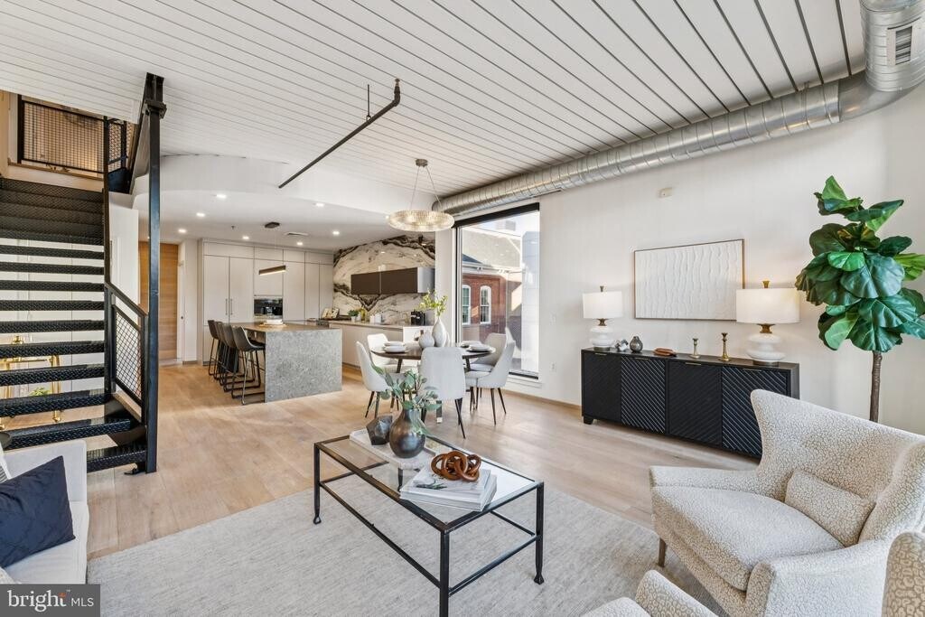 Truly spectacular! The trophy unit in the Warehouses at Union Row, this expansive 3 bedroom 3 bathroom penthouse is the epitome of luxury city living. The nearly 2200 sqft of living space coupled with an additional 471 sqft of private outdoor space combines the interior space of a single family home with the natural light, expansive views, and convenience of a penthouse condo to create a one-of-a-kind living experience. A perfectly located guest bedroom with full spa bathroom near the front door allows guests to come and go with ease. A chef’s kitchen features large slab backsplash, a Bertazzoni range and a built-in Mielle espresso machine. The seamless transition from kitchen, to dining and living areas creates an immersive space defined by open-concept living at its finest. An entertainer’s dream the floor-to-ceiling windows, open layout, and two distinct outdoor spaces are perfect for large or intimate gatherings. Take the party upstairs to the third floor “Sky Box†complete with wet bar, mounted tv, motorized shades and 360 degree views of the city. On the second floor you will find 2 bedrooms and 2 baths including a 2 story owner’s suite with loft space that connects to a second outdoor terrace and the third floor Sky Box. Make the loft into an office, reading nook, yoga studio, the possibilities are endless. Walk-in closets include custom built-ins. Luxury designer finishes complete the upgrades to both second floor bathrooms. In-unit washer and dryer, central air-conditioning and a handicapped garage parking space (Space #41) provide all the modern conveniences. This is the largest and most unique unit in Union Row. Perfectly situated at the intersection of Logan Circle and U ST, the location is unbeatable. Sample the eclectic lineup of award-winning restaurants and bars along 14th or U Street. Easily run every day errands with Whole Foods and CVS just outside your door. Enjoy all of the unique small businesses and shops that both 14th St and U ST have to offer. Reach other notable DC destinations within minutes on foot or by Metro. A home that has the best in both luxury and location, this penthouse is proof that your next investment can truly have it all.