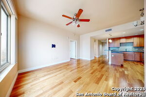 GORGEOUS, ONE BEDROOM, ONE BATH CONDOMINIUM WITH MANY AMENITIES SUCH AS GYM, SALTWATER POOL, BARBECUE GRILLS, AND 20TH-FLOOR SKY-ROOM FOR PRIVATE PARTIES. THE VIDORRA PROVIDES ELEGANT AND SOPHISTICATED LIVING IN THE HEART OF DOWNTOWN SAN ANTONIO! THIS GORGEOUS, ONE BEDROOM, ONE BATH CONDOMINIUM IS AVAILABLE FOR MOVE IN. STUNNING WOOD FLOORS THROUGHOUT THIS OPEN CONCEPT FLOOR PLAN. THE LARGE DINING AREA EXTENDS TO THE COVERED BALCONY WITH CITY VIEWS WHICH IS RELAXING. THE GOURMET KITCHEN COMES WITH STAINLESS STEEL APPLIANCES, INCLUDING A DOUBLE WIDE SS REFRIGERATOR. THERE IS ALSO 24 HOUR CONCIERGE SERVICE! WATER INCLUDED.