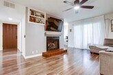 This home boasts 2 spacious bedrooms with walk in closets, cozy fireplace in the living room, quartz counter tops, walk in shower and bathtub, newer flooring, new A/C, newer light fixtures, private balcony, covered parking spot, washer and dryer, newer water heater, and much more. Water, trash & sewer included. Blink security system. Neighborhood watch. Pool & jacuzzi.