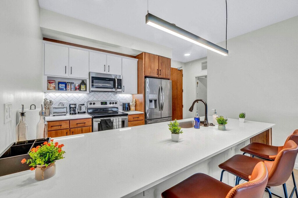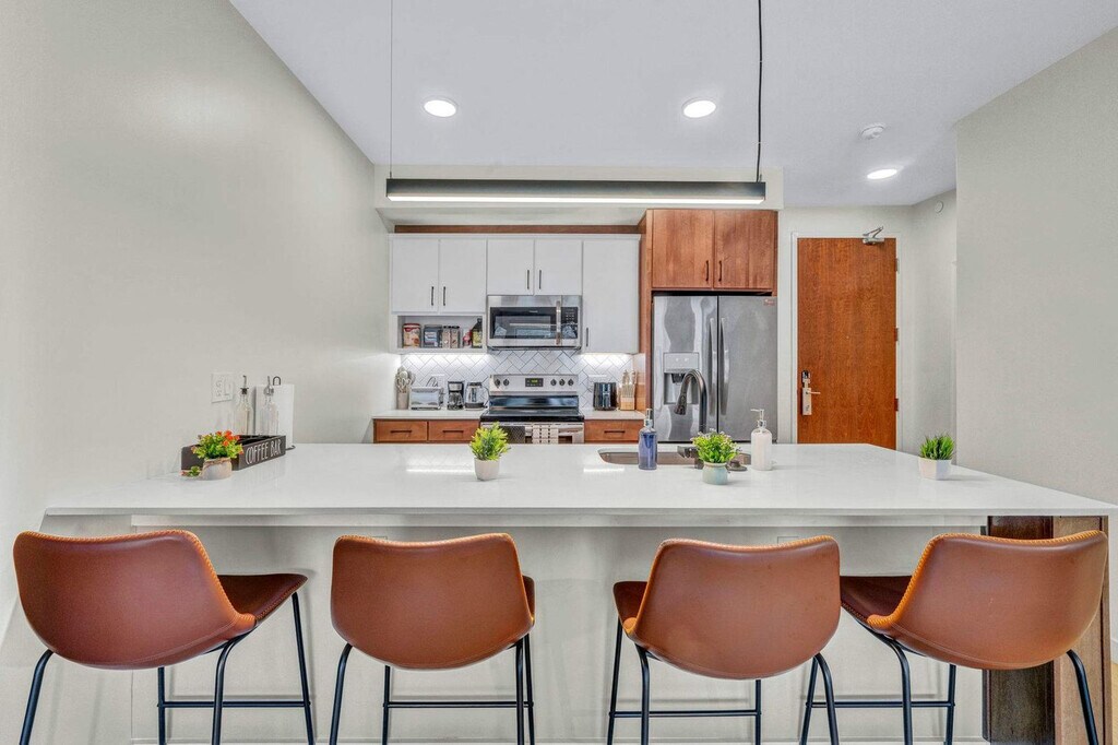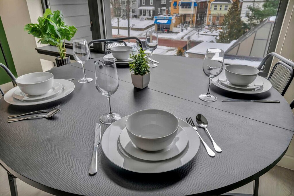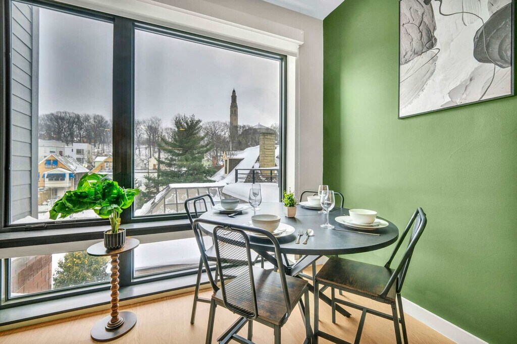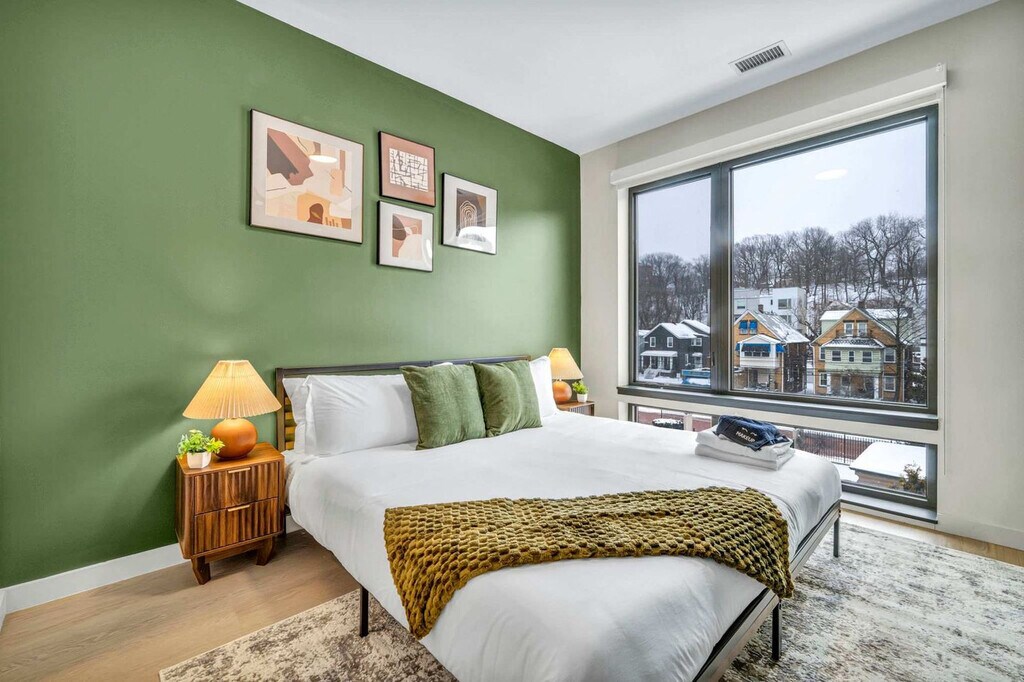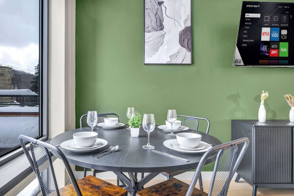 Enjoy a relaxing family getaway and feel at home in this modern 1-bedroom apartment in the heart of Cleveland! Located in the university belt, it's perfect for couples or small families. Please note that there are no elevators at this property, so guests need to walk upstairs. The living space features an innovative open-concept design that blends the living and dining areas with the kitchen, creating a modern and sleek living experience. It features a sofa bed and chair, a 4K 58" HDR smart TV, and a coffee table. The fully equipped kitchen includes a microwave, stove, oven, refrigerator/freezer, toaster, coffee maker plus coffee essentials, electric kettle, sink with hot and cold water, glasses, silverware, pots and pans, and a dining table with chairs. The bedroom features a king-size bed with pillows, linens, and sheets, an office desk and chair, reading lamps, and a 43" smart TV. The inviting full bathroom is completely private and separated from the main room and is stocked with all essential toiletries, including a bath with a shower, wash basin, mirror, toilet, towels, hand towels, washcloths. Parking is available on the premises, and instructions will be given at check-in. You’re close to hospitals/clinics, museums, universities, great restaurants, cozy cafés, neighborhood markets, and scenic parks. Nearby places include Cleveland Hopkins International Airport, Cleveland Medical Center, and Cleveland Botanical Garden. Restaurants and bars include Presti's Bakery, Etna, and Mama Santa's. Nearby markets include Forest Hills Shopping Center, FairFax Market, and Grocery Outlet. All guests must be 23 years old and above. Quiet hours are between 10pm and 8am every day, and noise complaints or any violation of this rule may result in cancellation of the booking and removal from the property without refund. There is a strict no-party policy, and if there is a party of any kind, the police will be called and everyone will be removed from the property with no refunds. No unauthorized guests are allowed at the unit, and there is a $100 fine per guest if discovered. Smoking is prohibited without exception on this property, and if any signs of smoking are found in the unit or on the premises, a fine of $500 will be imposed. If you are found to have brought pets without prior notification, there will be a $500 fee. [SI]