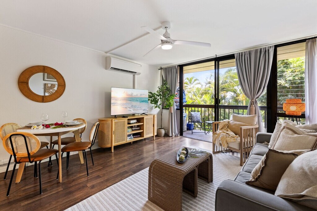 Feel at home in this cozy 1-bedroom, 1-bathroom ground floor condo at Maui Vista. With an oversized lanai, enjoy the tropical breeze and lush greenery, making it ideal for a relaxing Maui stay. This charming suite in South Kihei offers everything needed for a wonderful and relaxing stay on the beautiful island of Maui. Step out onto the oversized lanai to breathe in the tropical breeze while enjoying the lush greenery of the large grassy space just steps away. The condo is about 610 sqft and provides access to Maui Vista's fantastic amenities, including swimming pools, tennis courts, and BBQ grills. The kitchen is fully equipped, and the living room features a smart TV with over 200 channels. Ceiling fans and A/C are available in both the living room and bedroom, and in-unit laundry is provided. Guests have access to free parking for one car, and the condo is baby and kid-friendly with a provided pack and play and foldable high chair. Vacation-ready amenities include beach chairs, a cooler, a beach umbrella, and snorkeling gear. Kihei is the perfect spot for your next Maui adventure. With its long stretches of golden sand and crystal-clear waters, it's ideal for swimming, snorkeling, and watching spectacular sunsets. The laid-back town boasts a vibrant atmosphere with a variety of local eateries serving fresh seafood and Hawaiian specialties. Its central location allows easy access to other parts of the island, such as Lahaina and West Maui, or the Road to Hana on the East. South Kihei Road is very walkable with numerous restaurants and cafes, but driving is the best way to explore other parts of the island. Access is granted via a door code for self check-in at your convenience. This is not a pet-friendly home, and there is a $500 fine for unauthorized pets. Strictly no parties or events are allowed, with quiet hours between 10pm and 8am. No smoking or vaping of any kind is permitted anywhere on the property, including outdoor areas, and there is a $500 fine per violation. No shoes are allowed in the home. Registration Number: 39, TA--01 [SI]